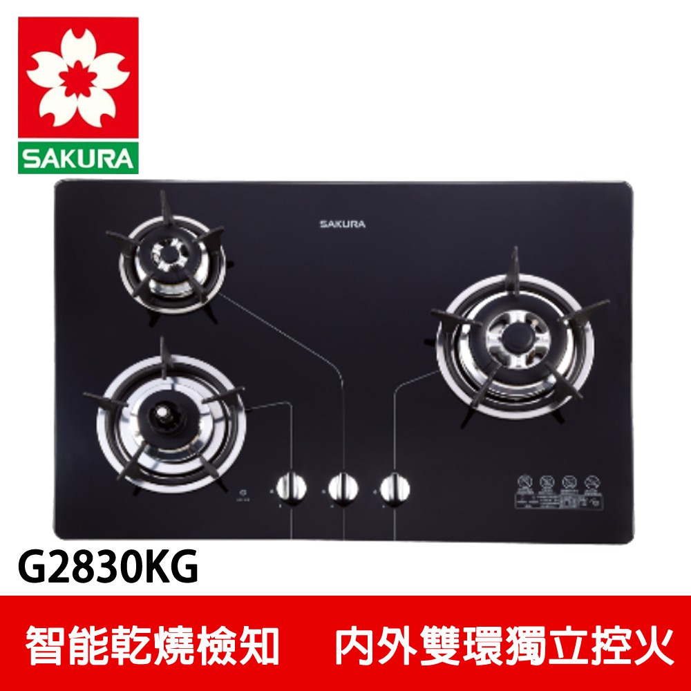 【SAKURA櫻花】 三口防乾燒節能檯面爐 (G2830KGB)