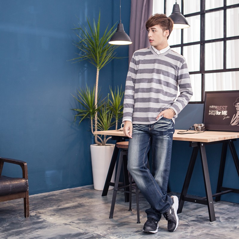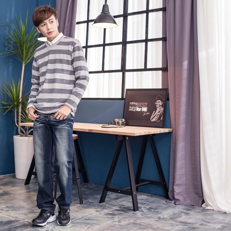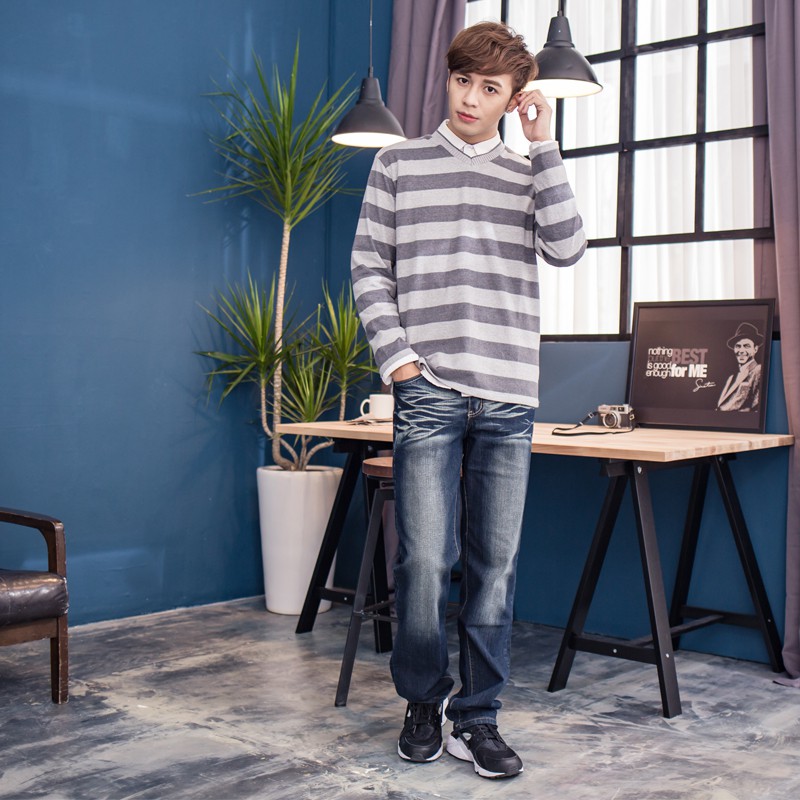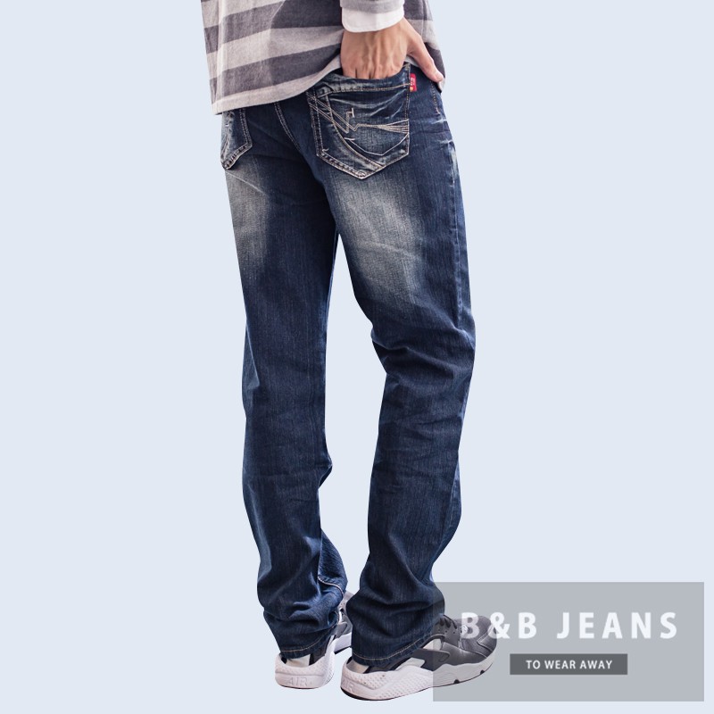 手作刷色水洗彈力繡線造型牛仔褲