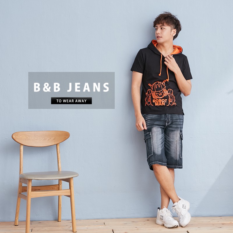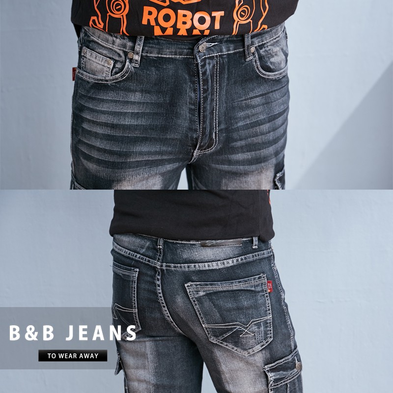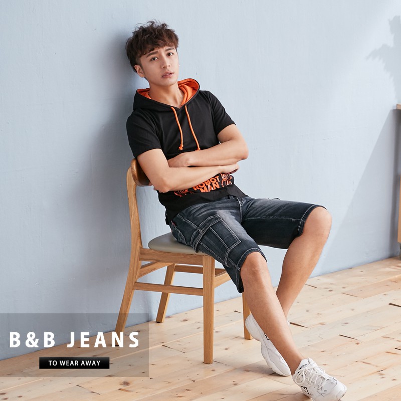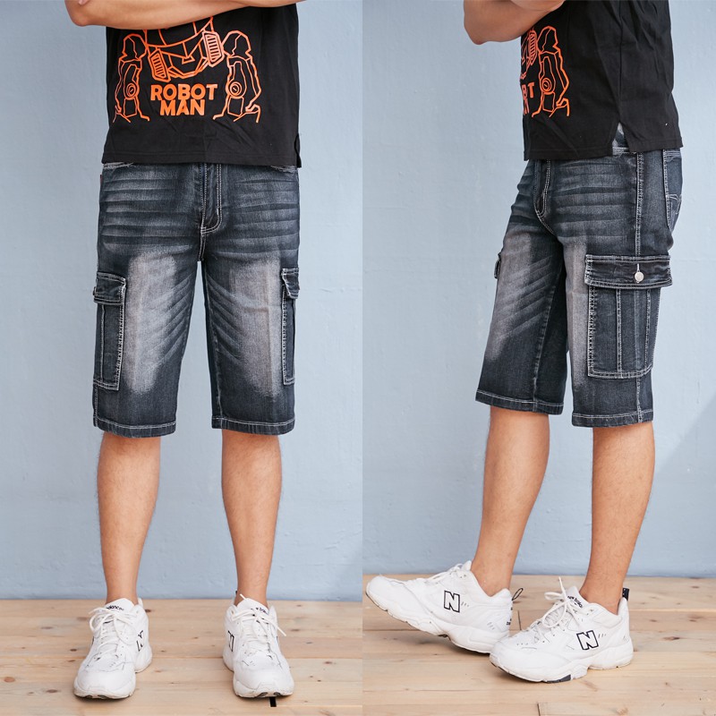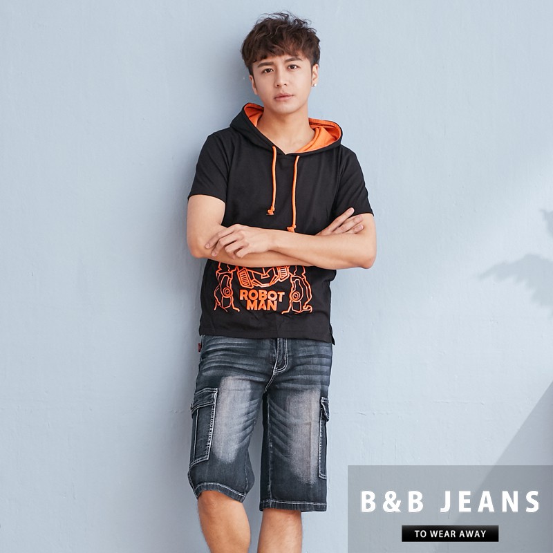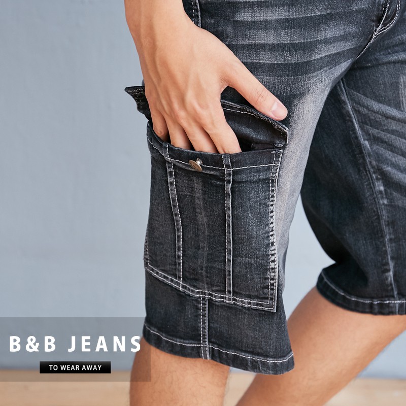 手作刷色水洗彈力繡線牛仔褲.工作褲短褲
