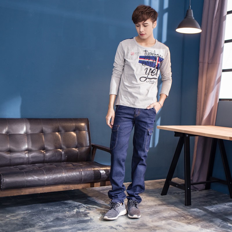 湛藍素色百搭工作牛仔褲