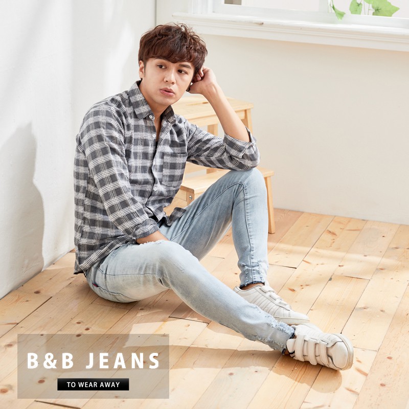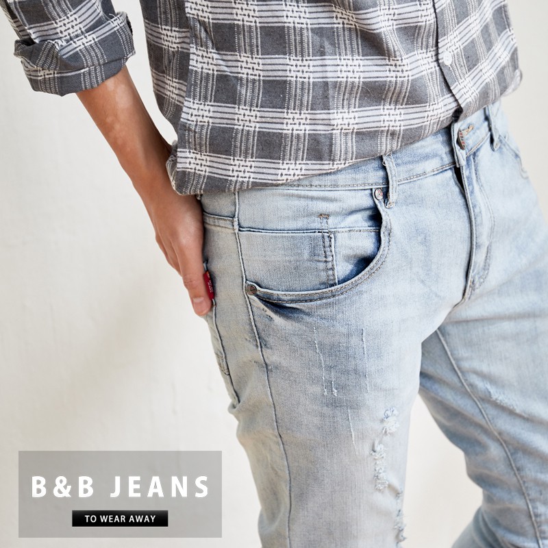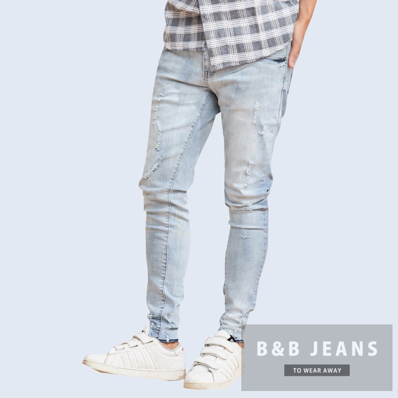 淺藍窄管潮流舒適牛仔褲