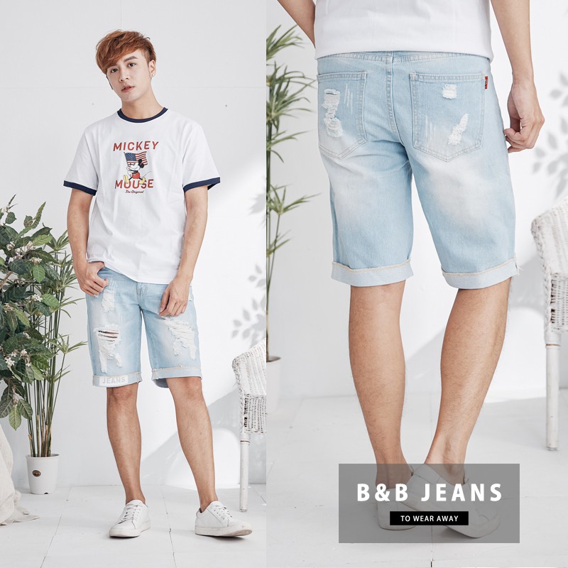 淺藍手工割破牛仔短褲