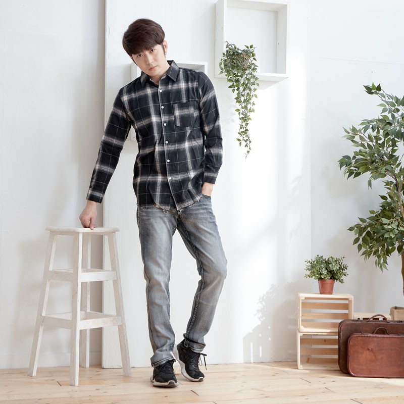 質感灰色丹寧小直筒牛仔褲