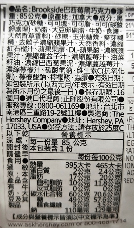 Brookside 美國果餡巧克力 - 野莓燕麥/梅洛葡萄/巴西莓/紅石榴