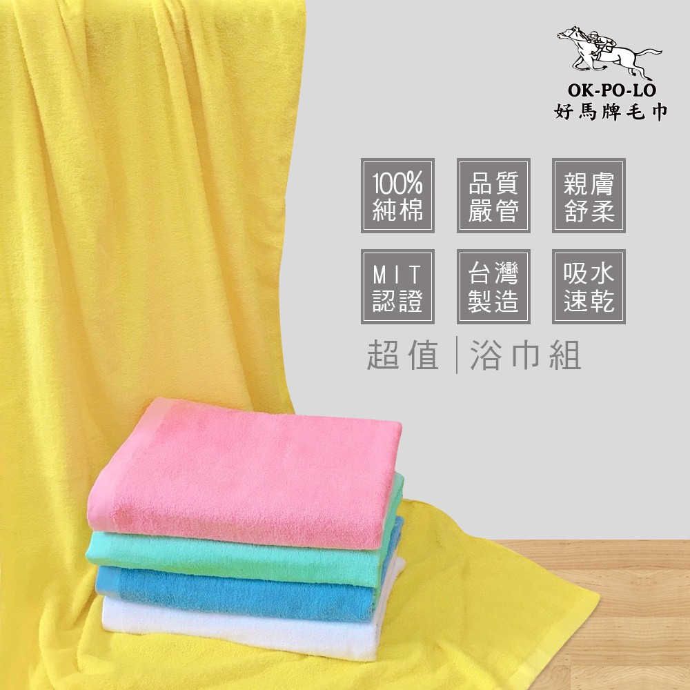 OKPOLO 台灣製造家用素色浴巾-2入組(100%棉 超強吸水) 素色浴巾 浴巾 毛巾 吸水浴巾 家用浴巾 純棉製造