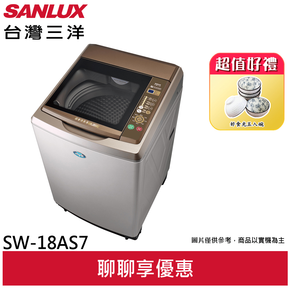 【台灣三洋】SANLUX17KG (超音波)定頻洗衣機 內外不鏽鋼 SW-18AS7(輸碼94折 HEFS94ML)