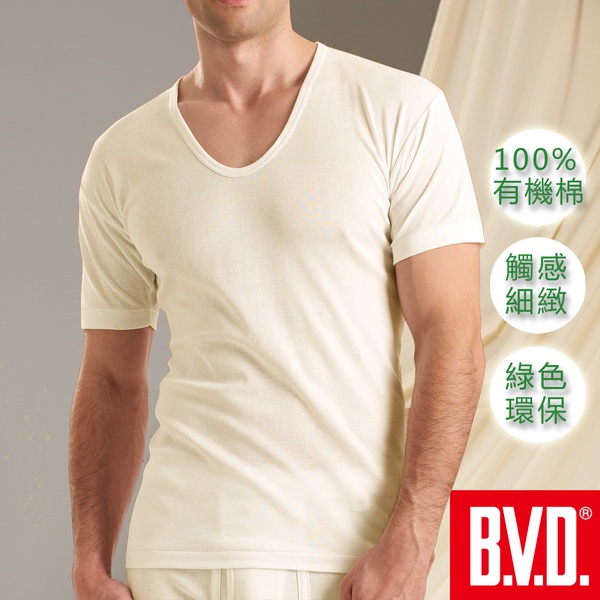 BVD 純天然優質有機棉U領短袖衛生衣 內搭衣 敏感肌膚適用