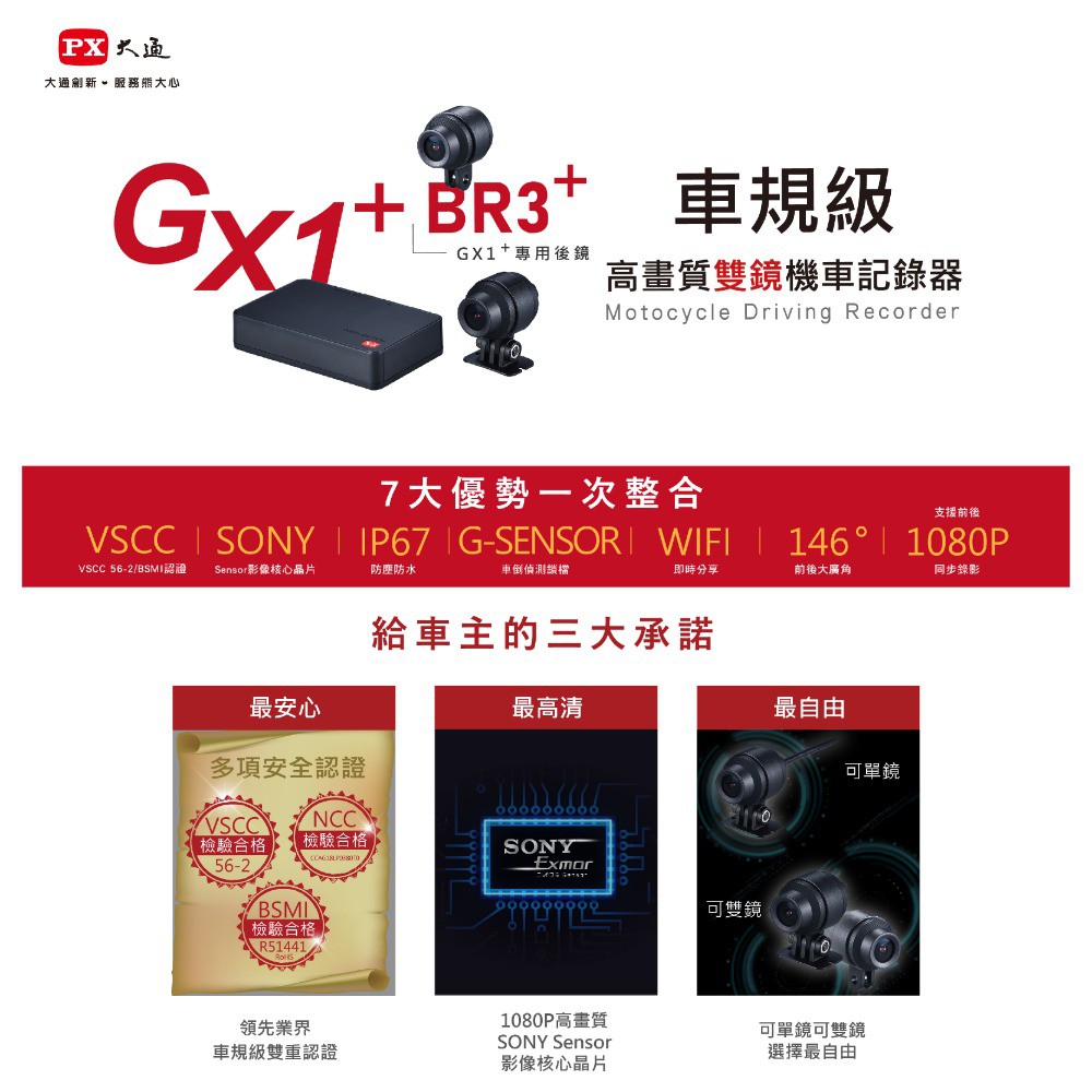 PX大通GX1+BR3組合包機車行車記錄器重機行車紀錄器sony前後鏡頭HD1080P高畫質WIFI車規認證行車記錄器