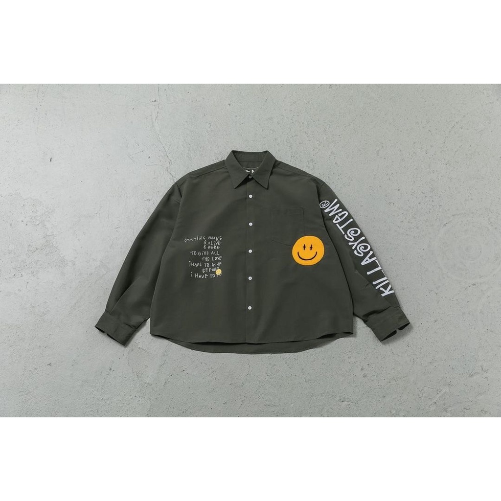 FASHION KILLA 22S/S SMILE FACE PATCH SHIRT 笑臉貼布薄長襯衫 天空藍/橄欖綠