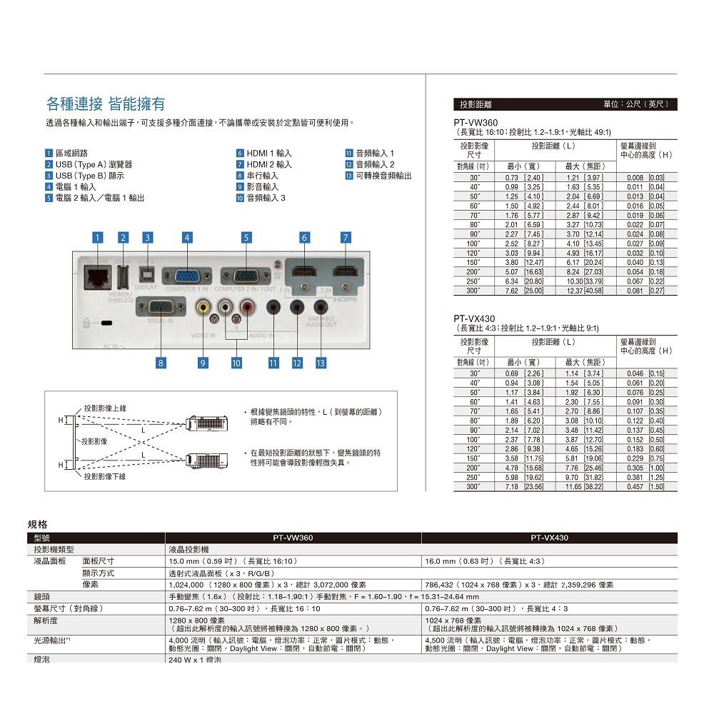 【Panasonic 國際牌】PT-VX430T 4500流明 XGA可攜式輕巧投影機
