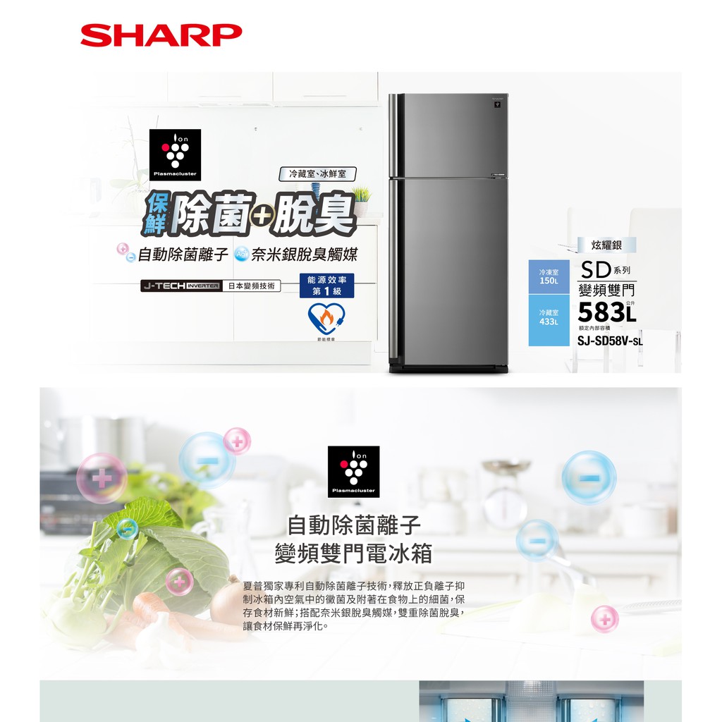 【SHARP 夏普】日本自動除菌雙門變頻電冰箱 583L SJ-SD58V-SL (送基本安裝)