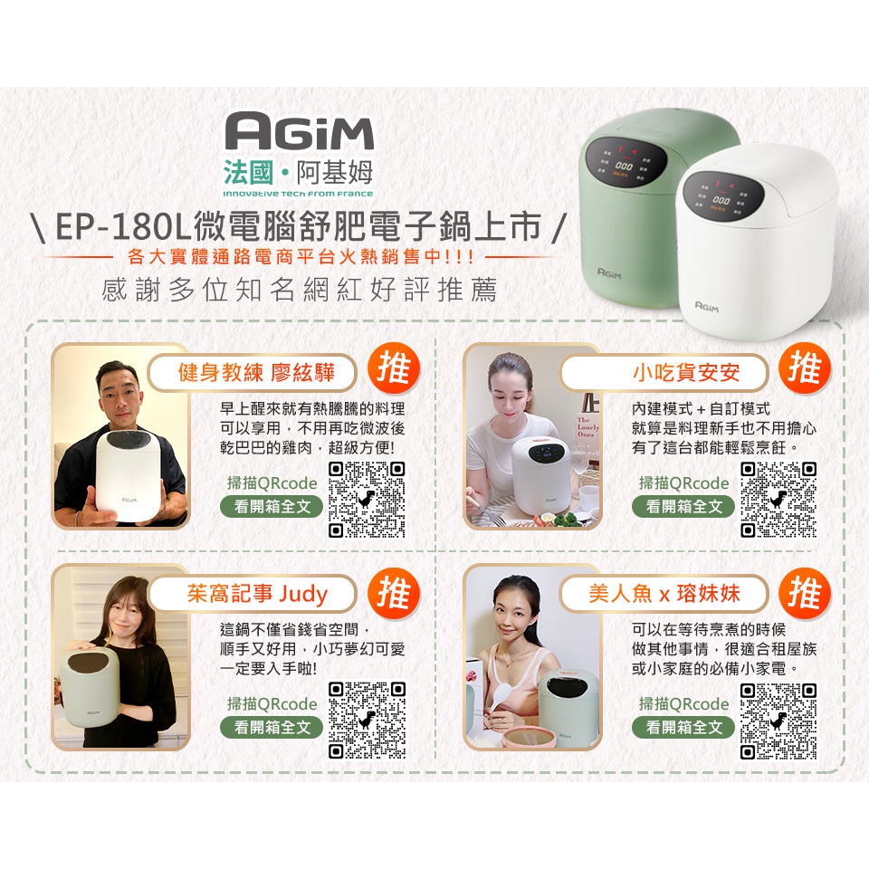 法國 阿基姆AGiM 微電腦舒肥電子鍋 萬用鍋 EP-180L 燉鍋 料理鍋 震旦代理