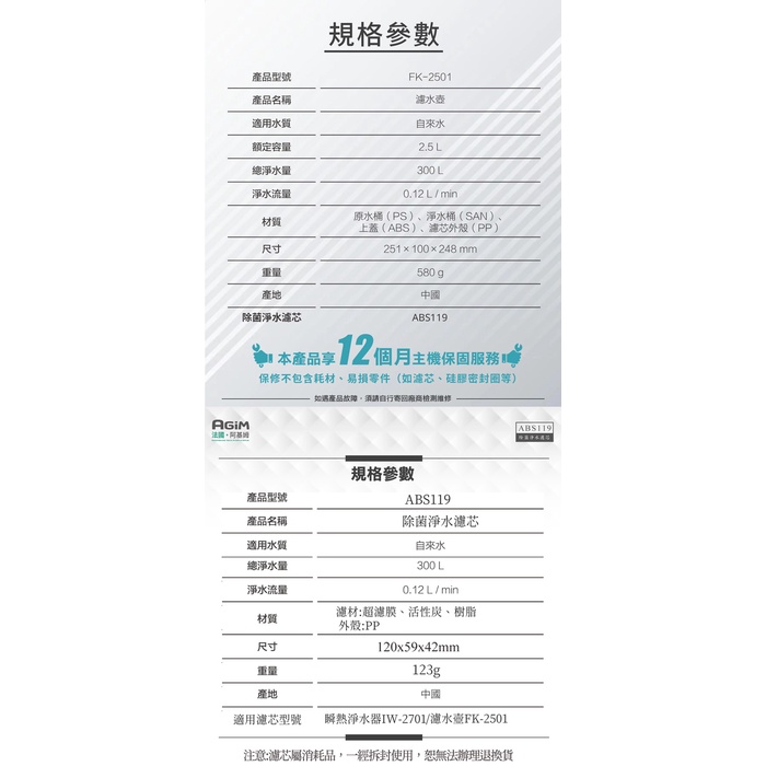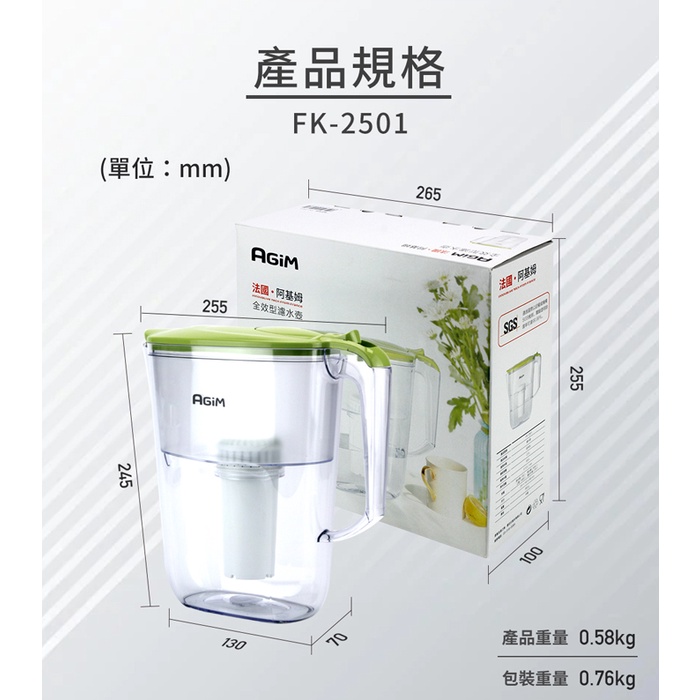 法國 阿基姆AGiM 2.5L生飲級全效型濾水壺組(附濾芯) FK-2501震旦代理