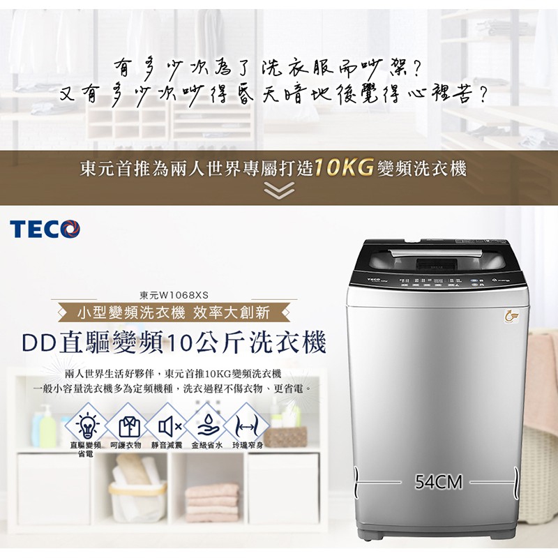 東元TECO 10公斤DD變頻直驅洗衣機 W1068XS (含基本安裝+舊機回收)