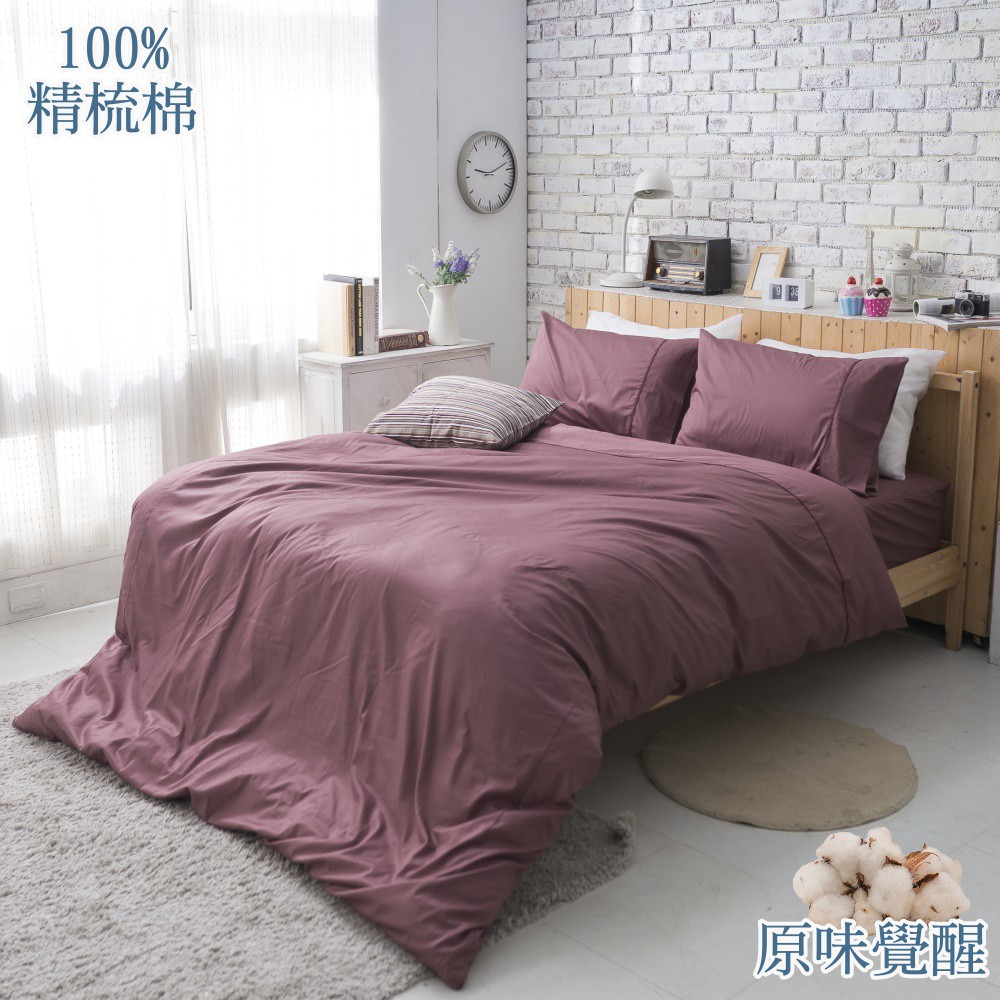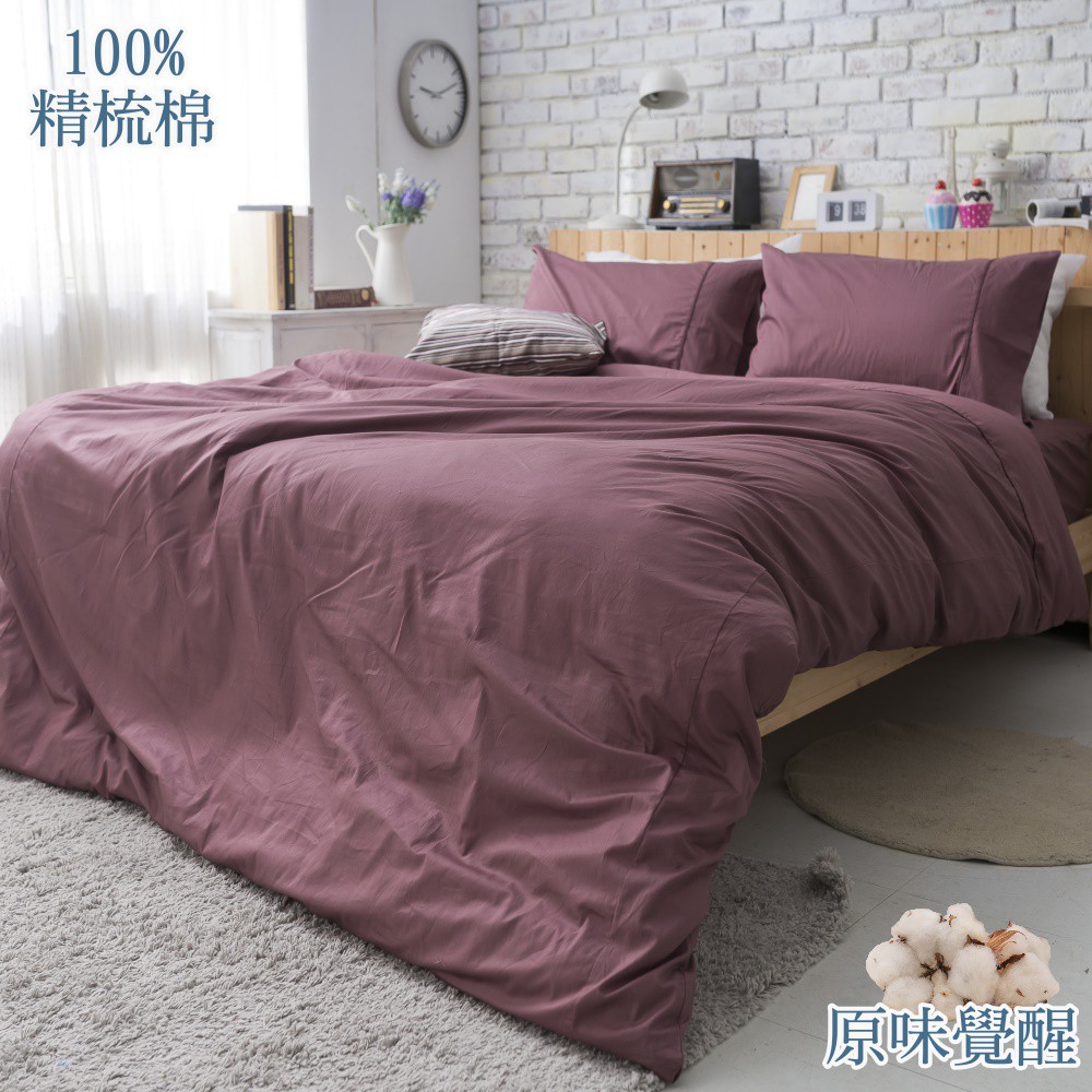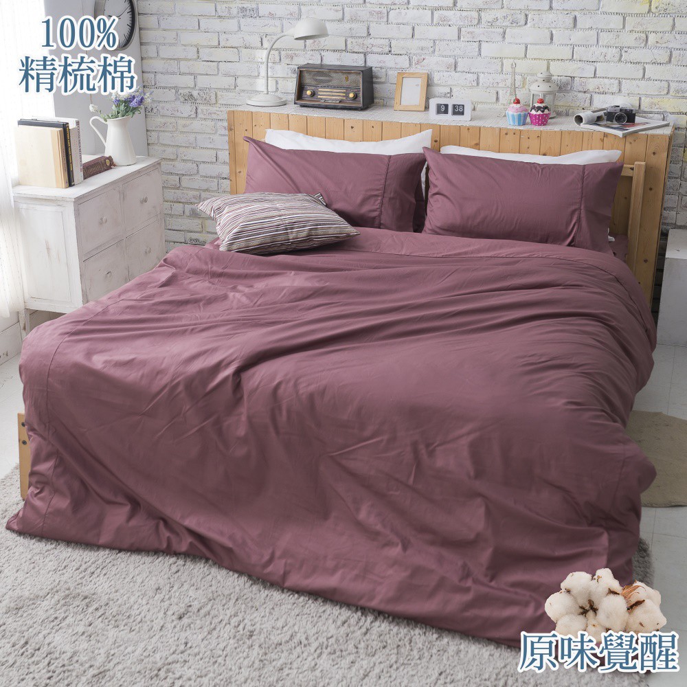【eyah宜雅】台灣製原味風素色100%-133x72精梳純棉雙人床包 雙人被套 紅豆紅
