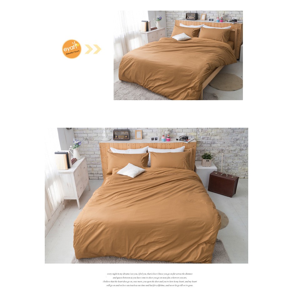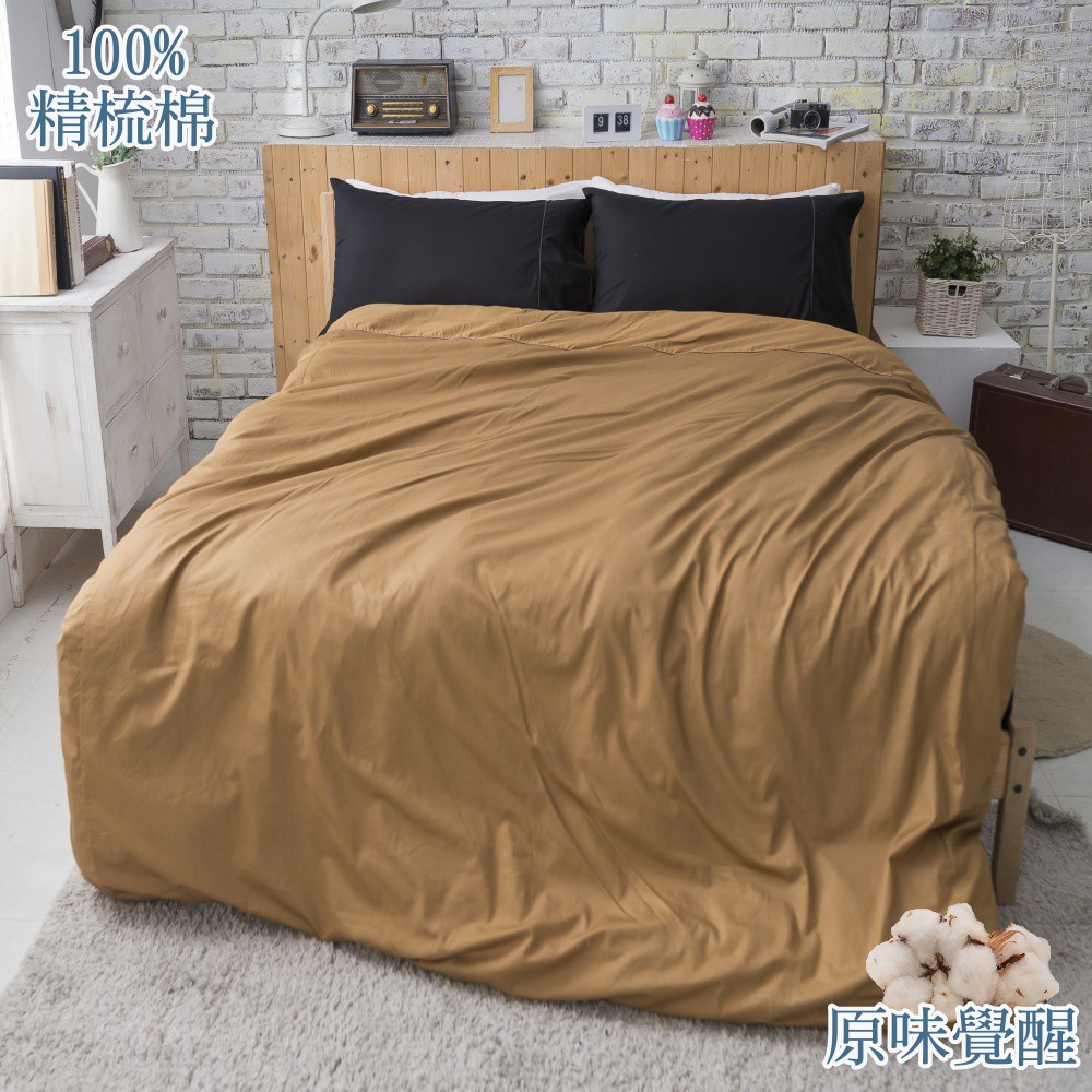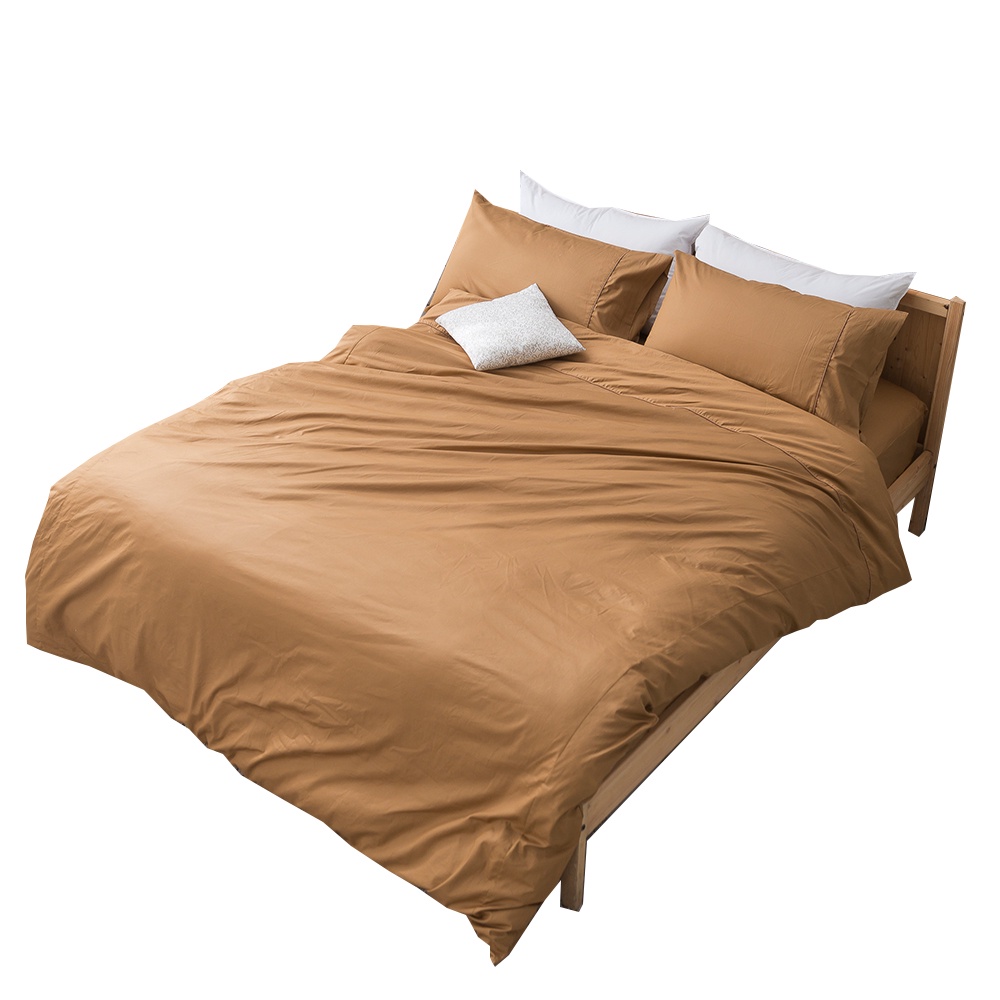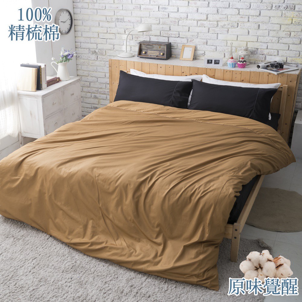 【eyah宜雅】台灣製原味風素色100%-133x72精梳純棉雙人床包被套四件組 花生咖