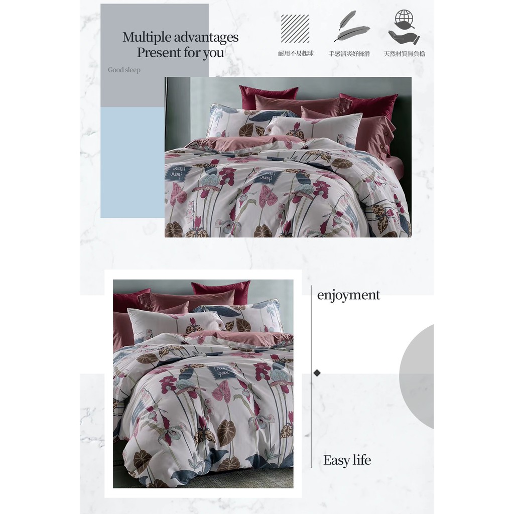 【eyah】荷風蓮香 長絨棉台灣製頂級60S/300織紗新疆長絨棉床包寢具 (床單/床包) 親膚 舒適