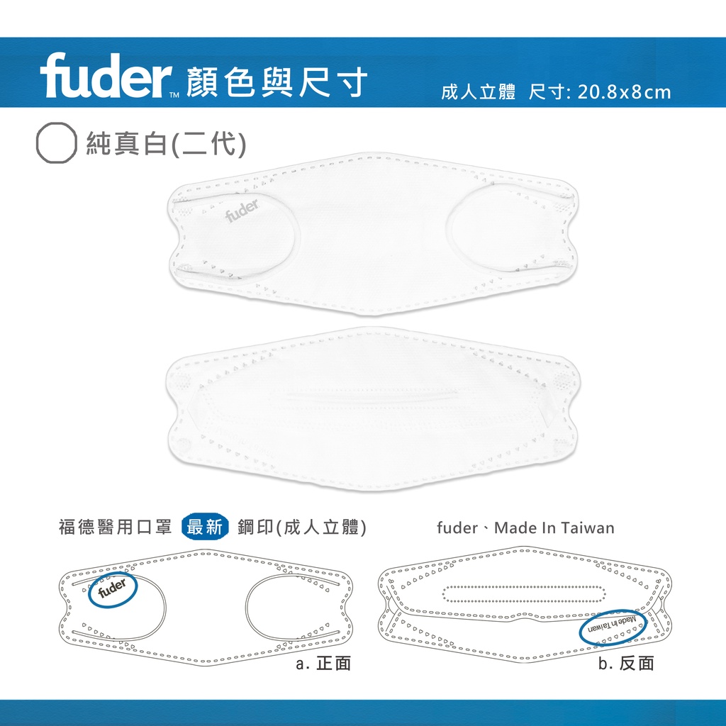 【福德好罩】福德醫用口罩 成人立體 韓版4D 純真白 10入/盒(小包分裝) 白色口罩|醫療口罩|現貨|官方直營