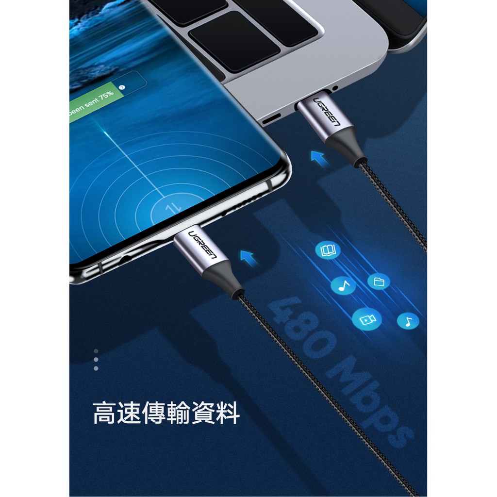【綠聯】Type C to Type C 充電線|0.5~2公尺|60W PD快充線|3A電流|金屬編織版|C TOC