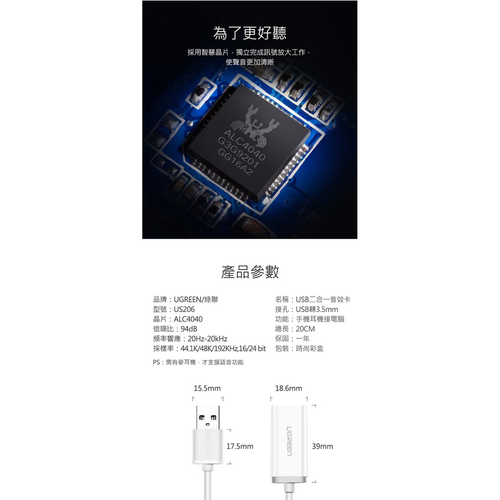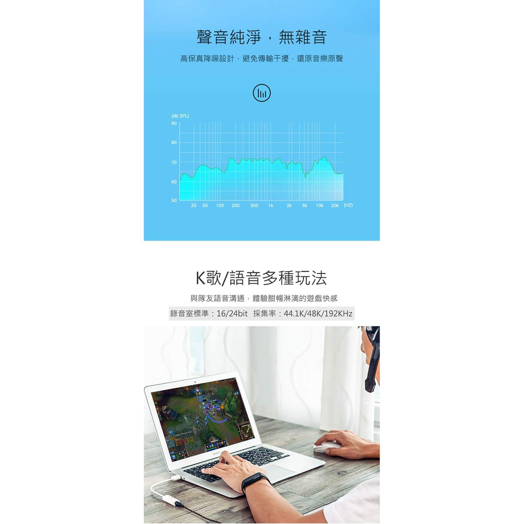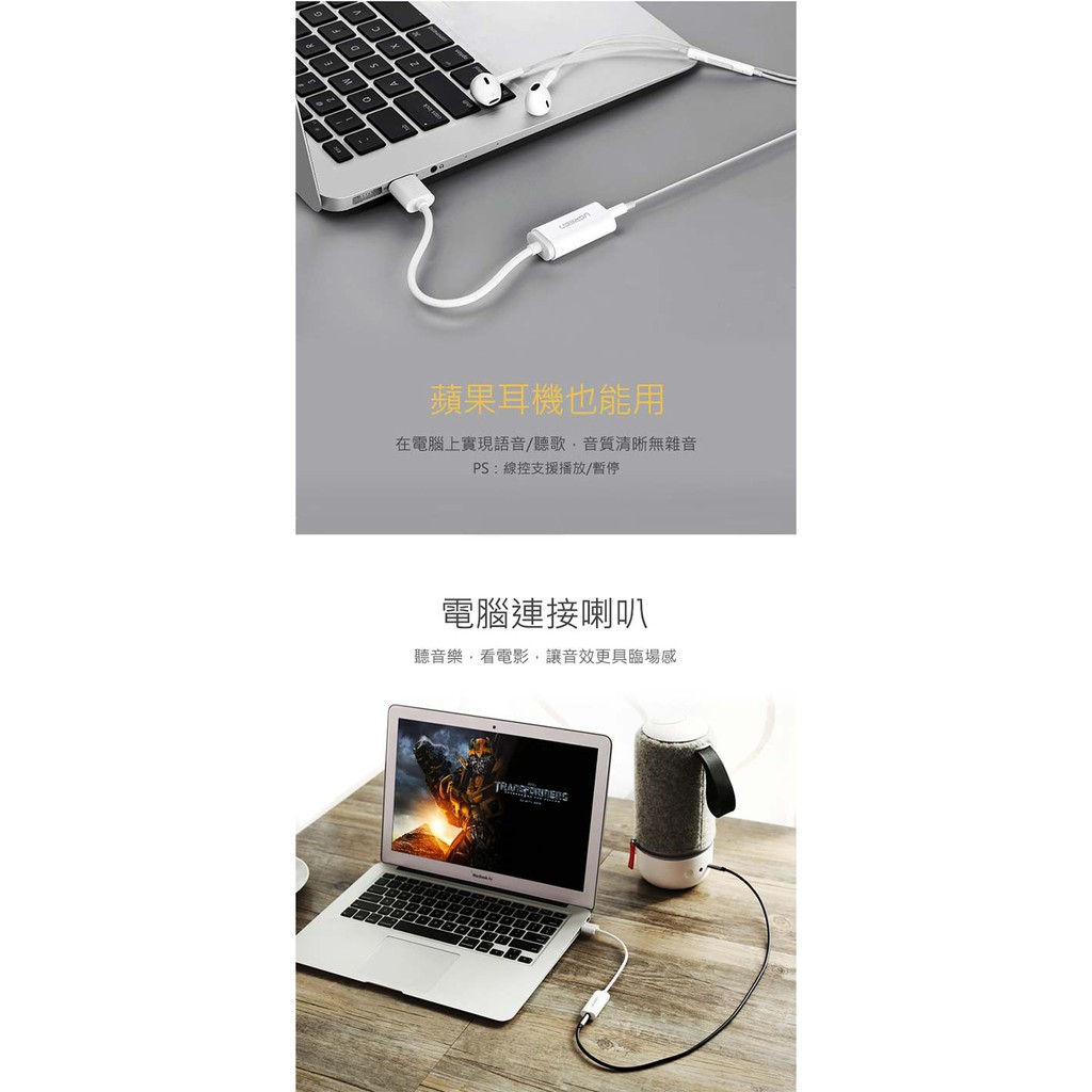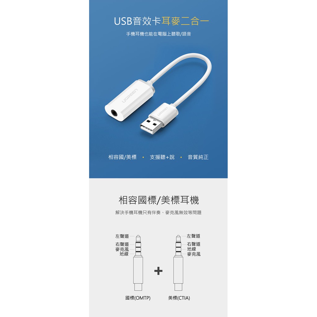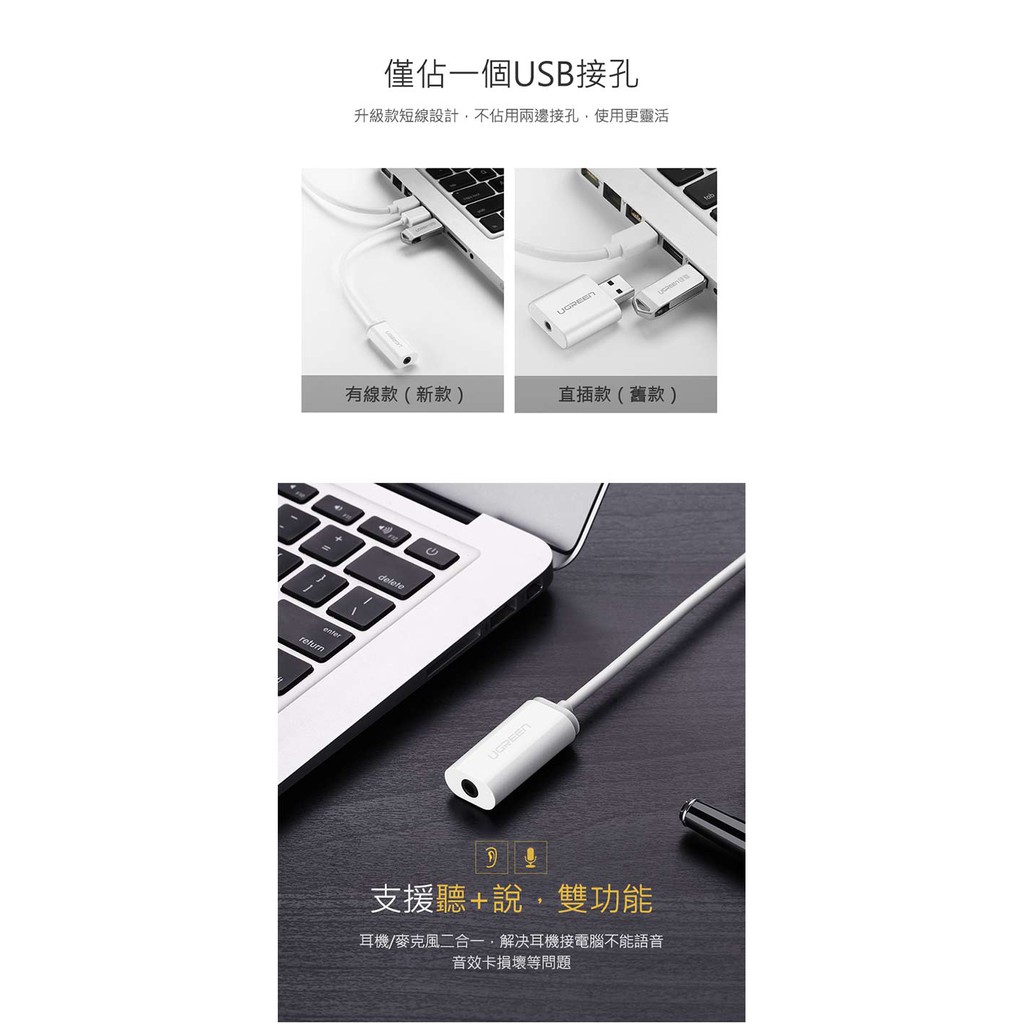 【綠聯】USB音效卡耳麥二合一|支援聽說功能|蘋果耳機適用|即插即用免驅動|高保真降噪|現貨|隔日到貨