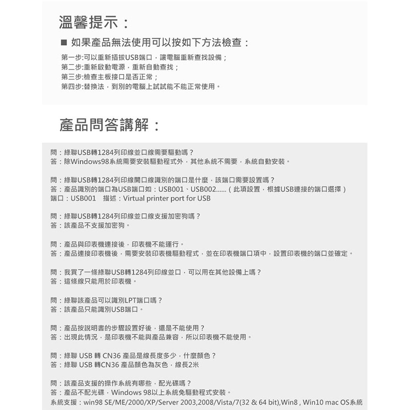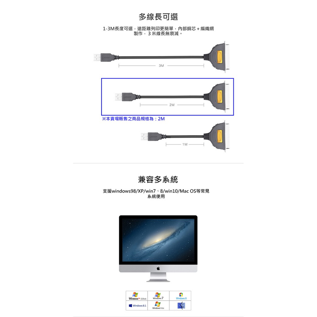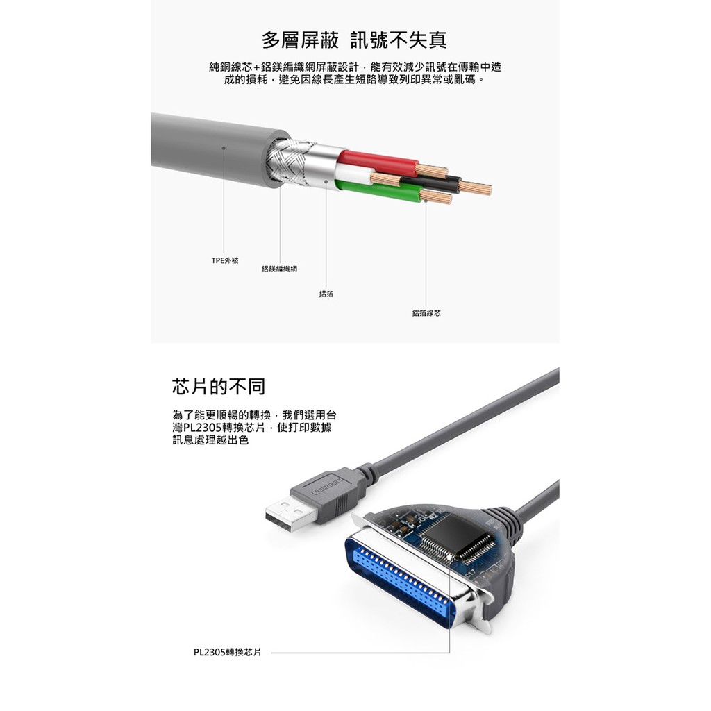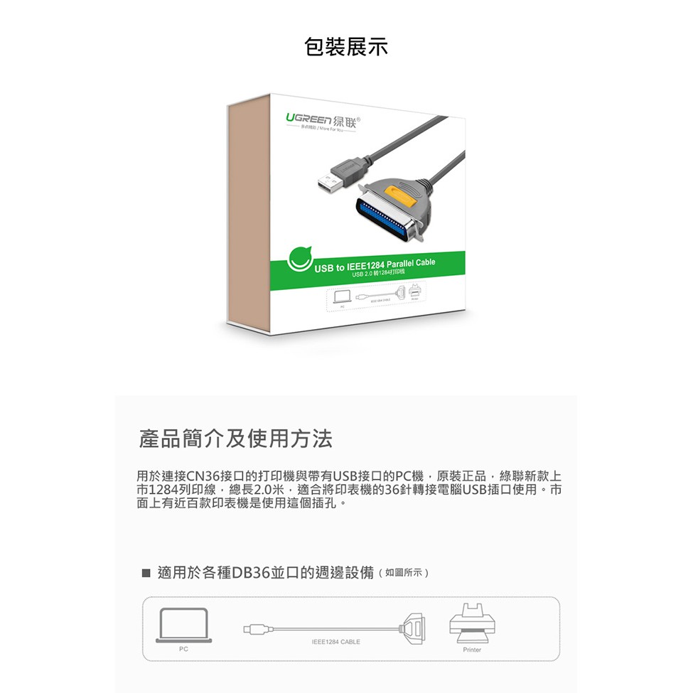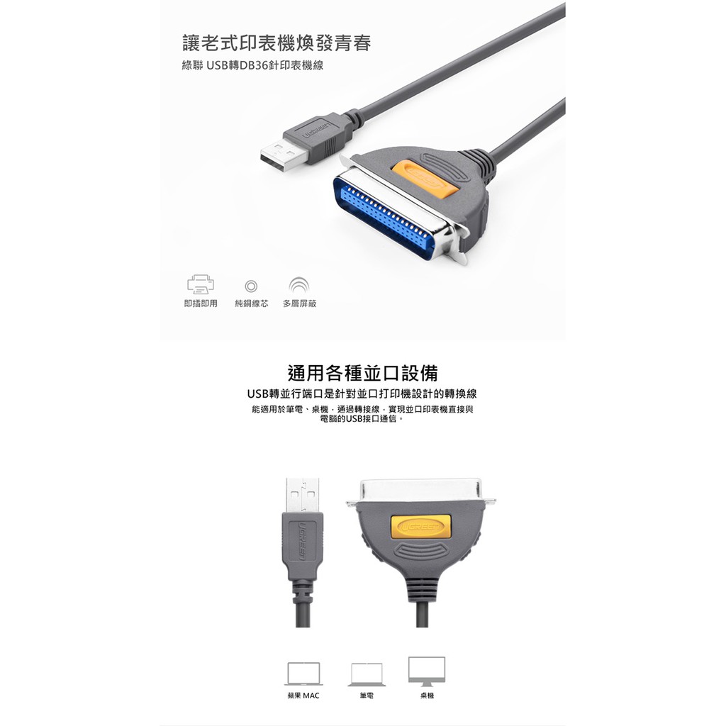 【綠聯】2M USB to IEEE1284印表機連接線/USB轉Printer Port轉接器|現貨|隔日到貨