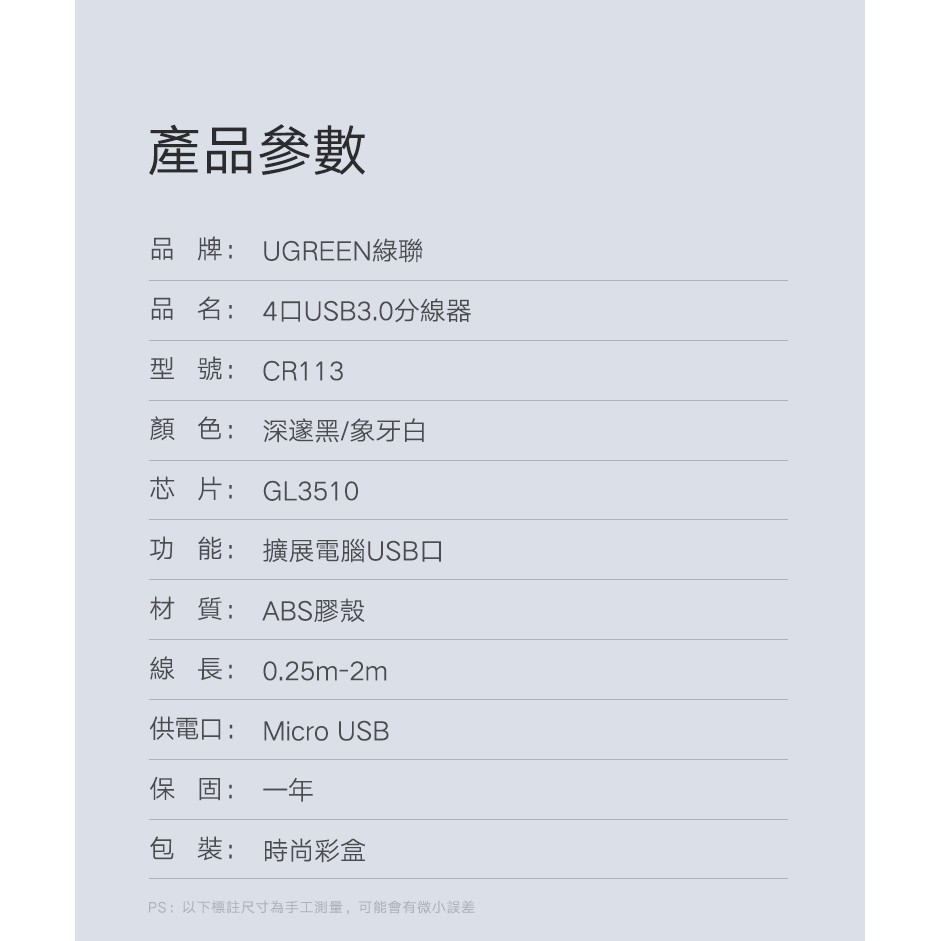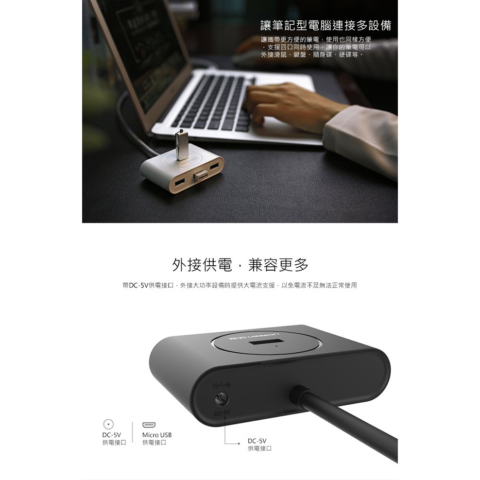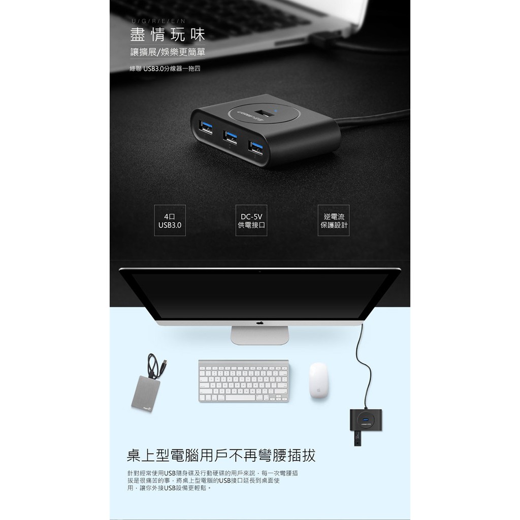 【綠聯】50cm 4孔 USB3.0集線器 300MB/S 傳輸速度