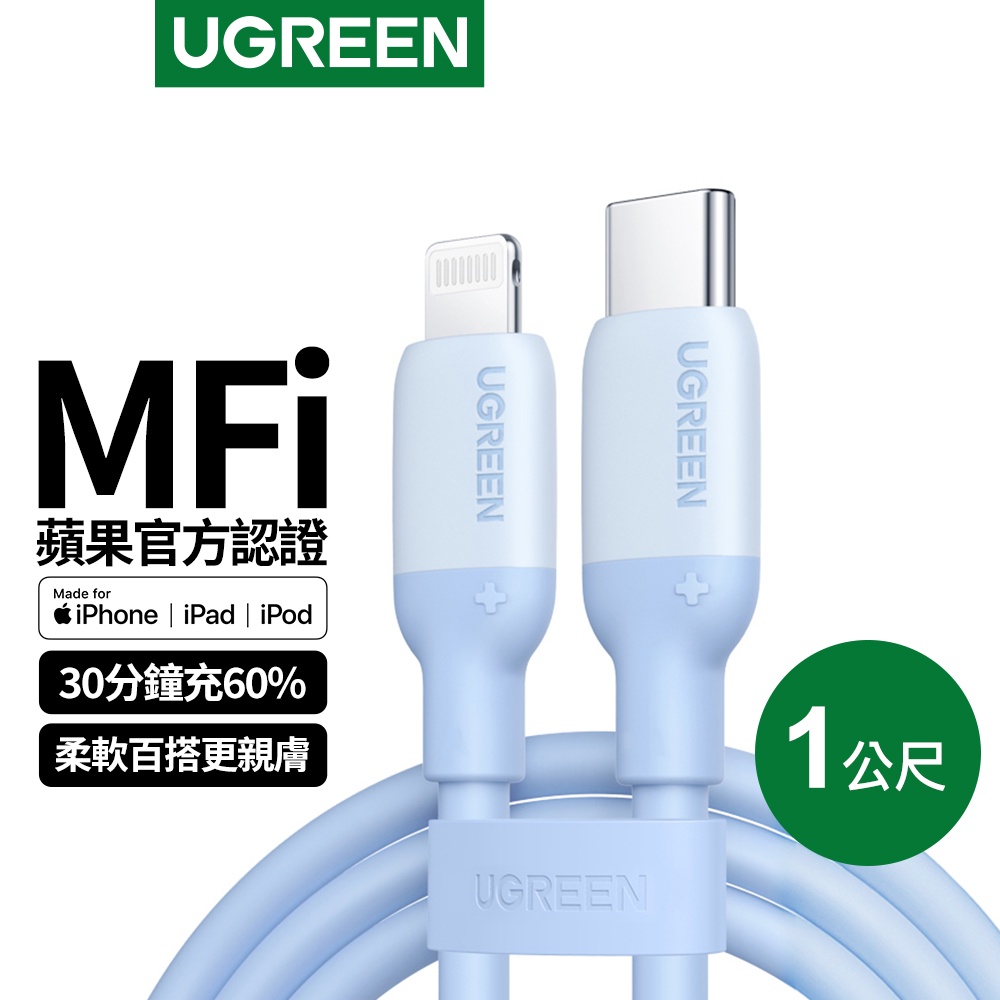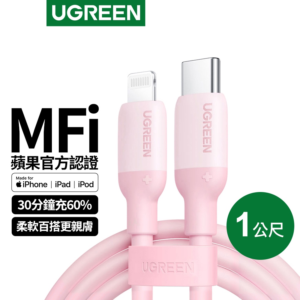 【綠聯】Type C to Lightning 蘋果充電線|1公尺|MFi蘋果官方認證|液態矽膠版|蘋果快充線|傳輸線