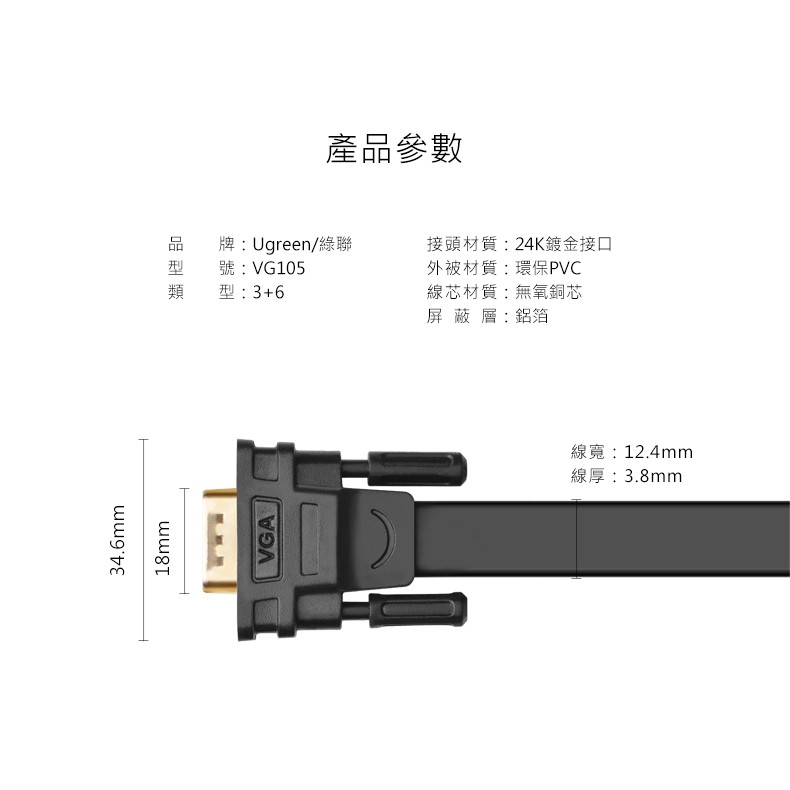 【綠聯】 3M VGA 扁線 現貨 隔日到貨