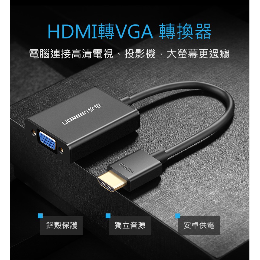【綠聯】HDMI轉VGA轉換器Aluminum版黑色|獨立音源輸出|高相容|穩定轉換|即插即用|現貨|隔日到貨