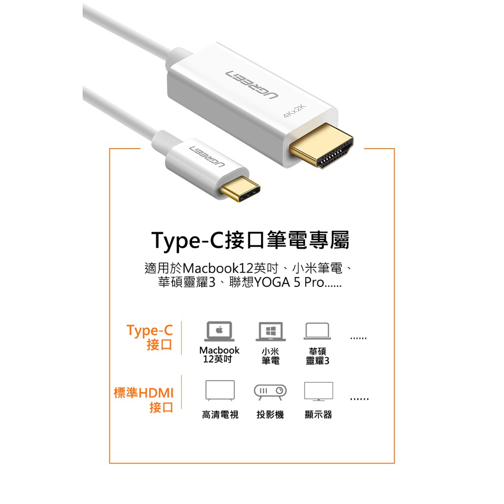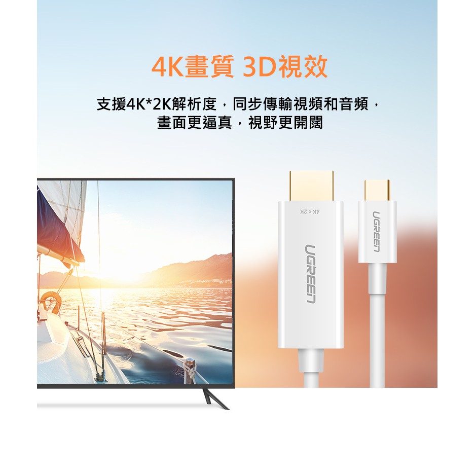 綠聯 1.5M USB Type-C轉HDMI傳輸線 白色
