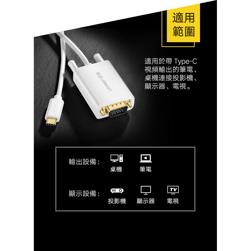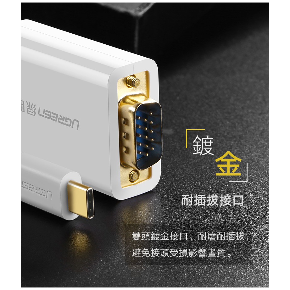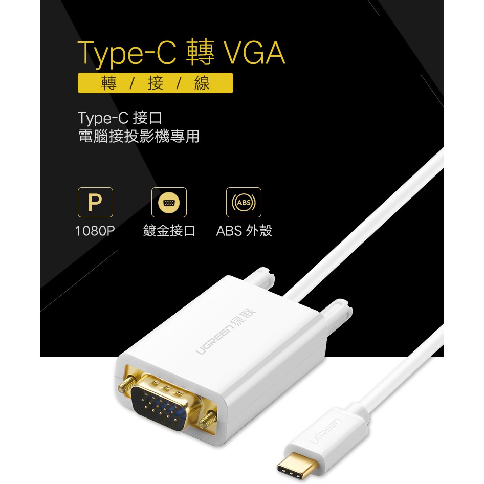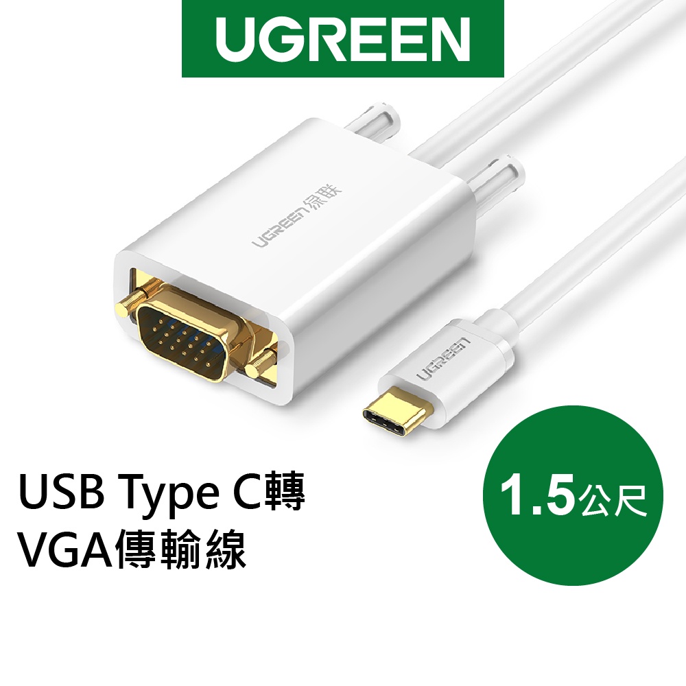 【綠聯】1.5M Type-C轉VGA傳輸線 White|投影機連接|1080P|鍍金接頭|穩定不閃屏|現貨|隔日到貨
