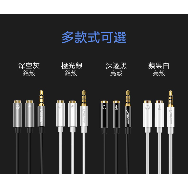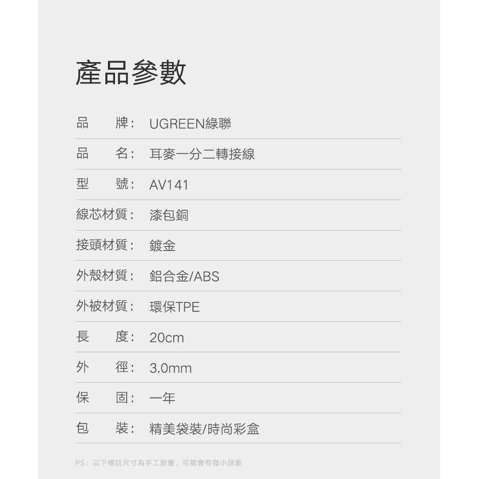 綠聯 3.5mm 公轉2母(AUX和麥克風)(20公分) 現貨