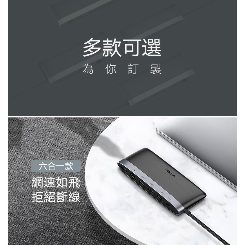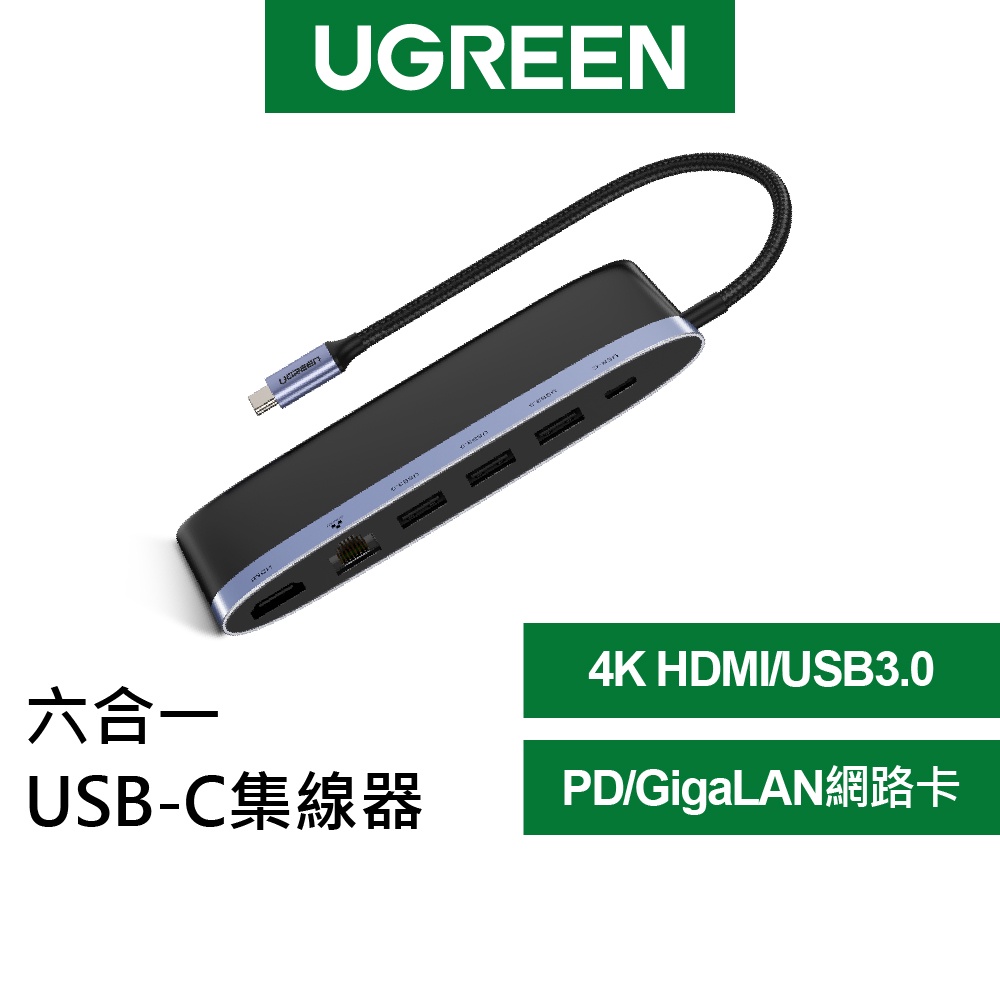 【綠聯】六合一USB-C集線器|USB3.0×3+PD+4K HDMI+/GigaLAN網路卡|深空灰|現貨|隔日到貨