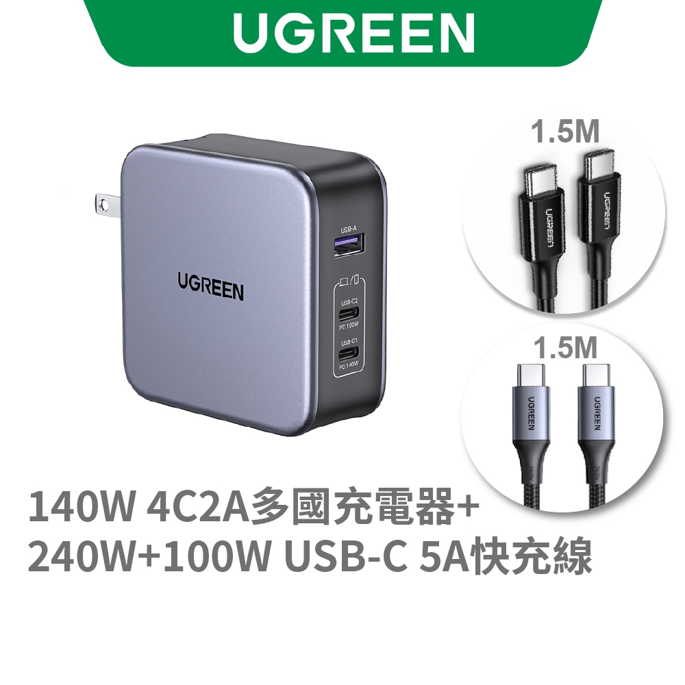 【綠聯】140W GaN 氮化鎵快充器|PD3.1筆電手機通用|2C1A + 240W CtoC 快充線|適用 Mac
