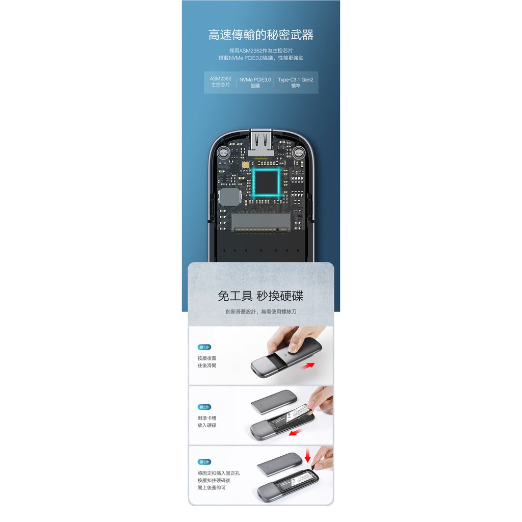 【綠聯】M.2 NVMe硬碟外接盒|USB3.1 Type-C|10Gb高速傳輸|鋁合金散熱|免工具快拆|現貨|隔日到貨
