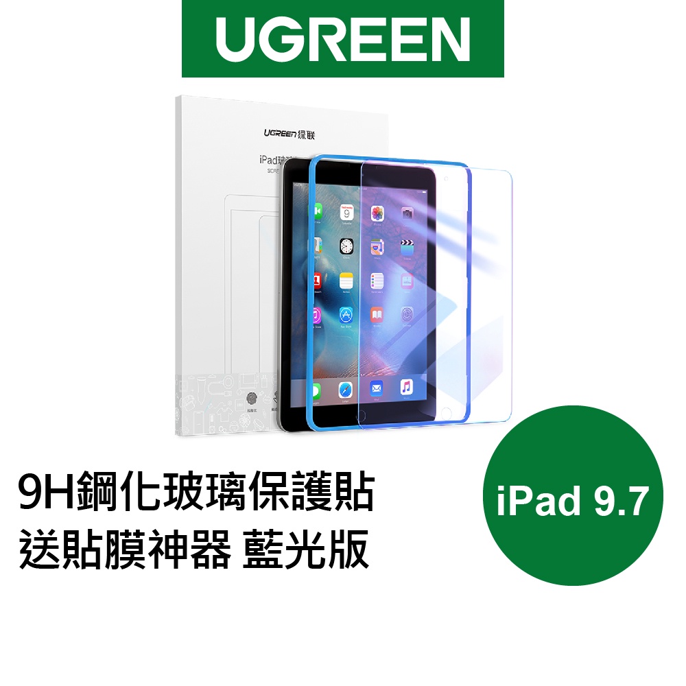 【綠聯】iPad 9.7吋9H鋼化玻璃保護貼|藍光版|抗指紋|高透觸控靈敏|防刮耐用|現貨|隔日到貨