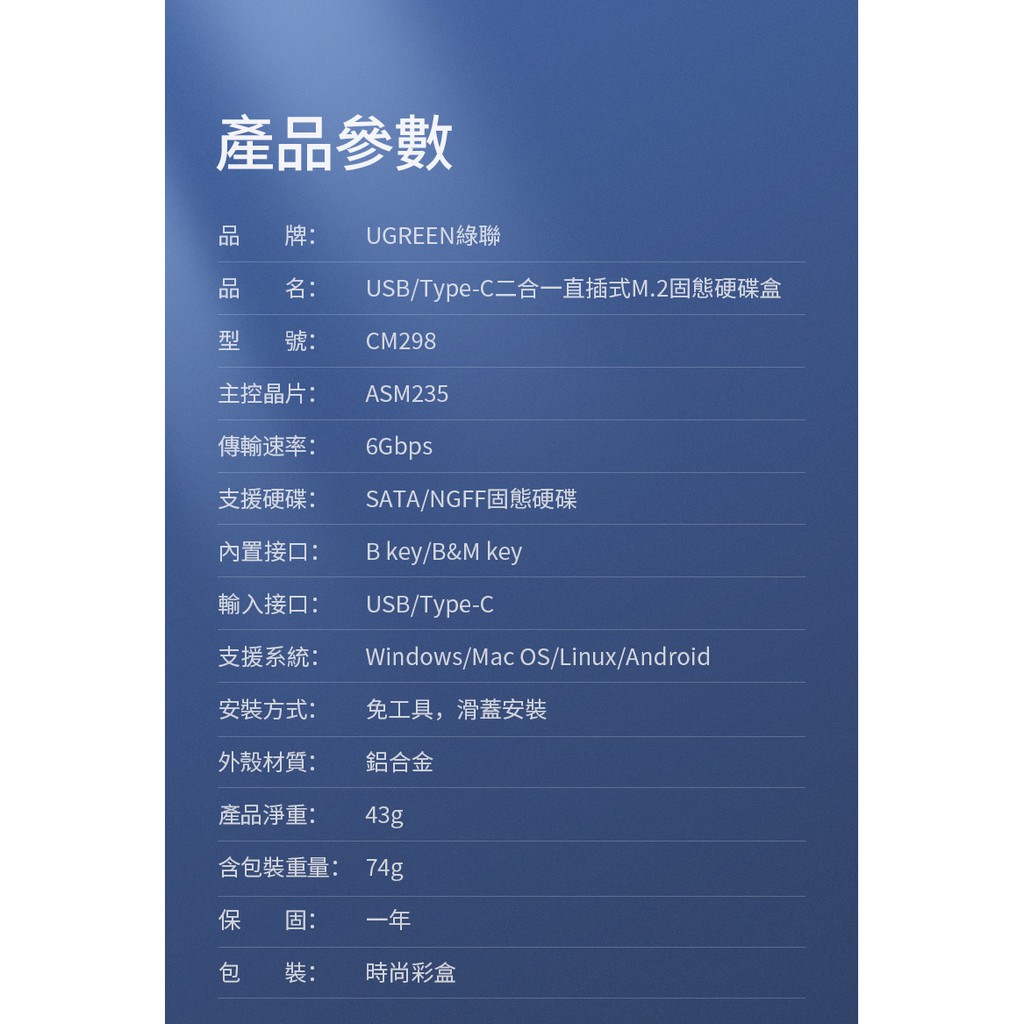 【綠聯】M.2 SSD 硬碟外接盒 Type-C/USB3.0二合一 SATA版