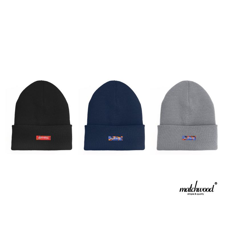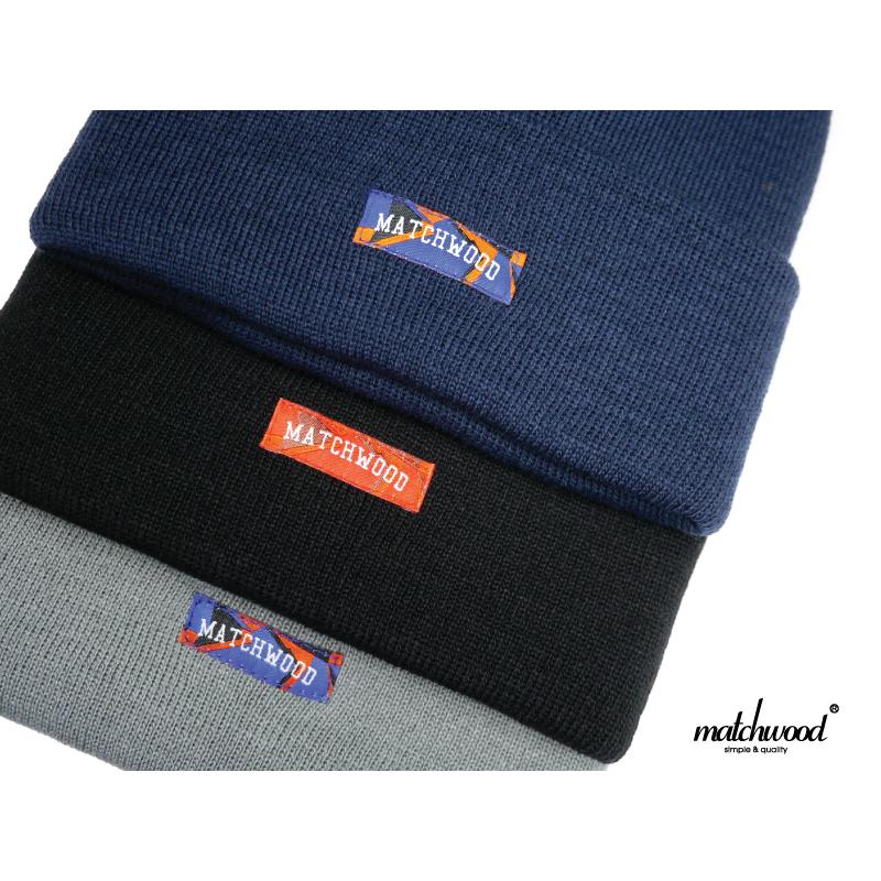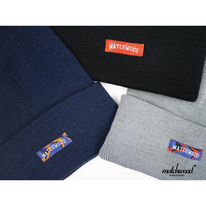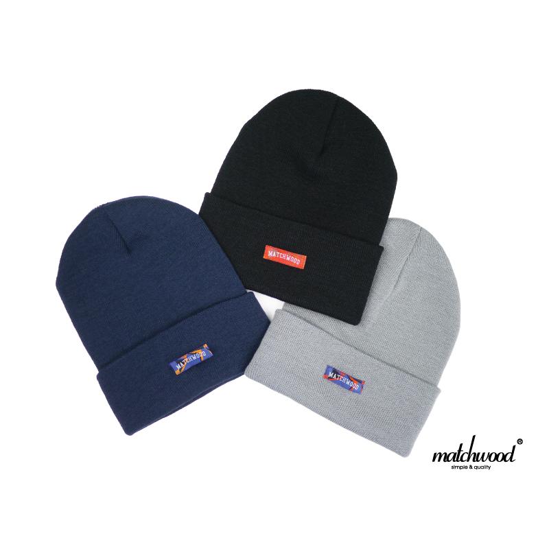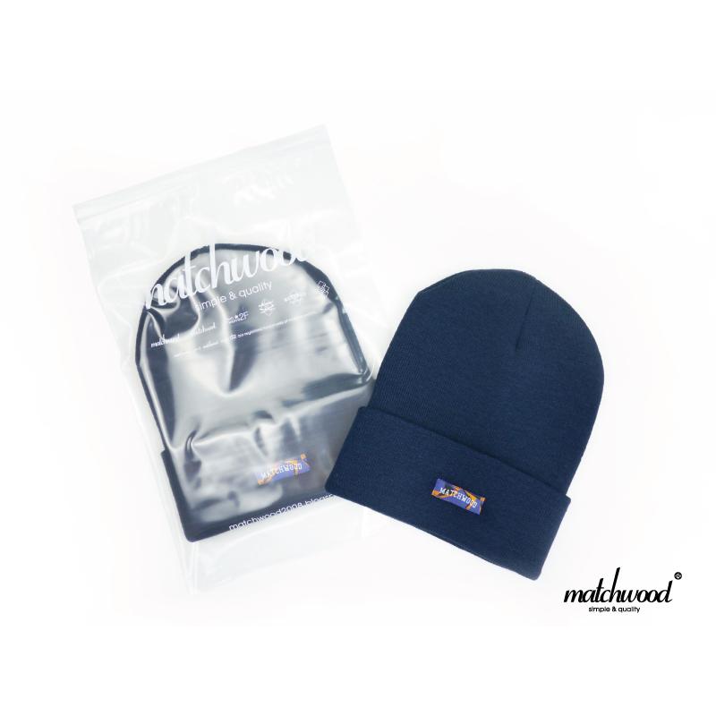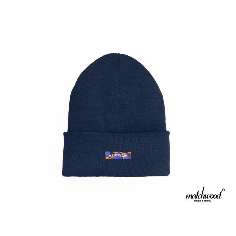Matchwood College Logo 幾何迷彩布標毛帽 海軍藍素面款 長版可反摺 官方賣場