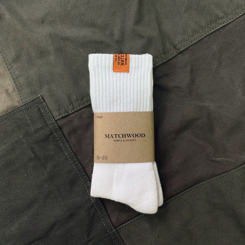 Matchwood Basic Sock 經典布標中筒襪 白色款 官方賣場