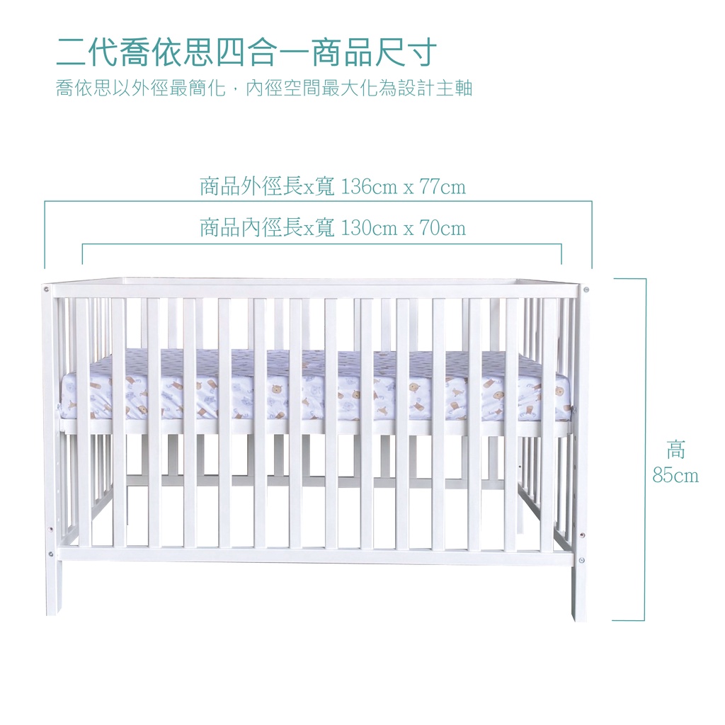 La Joie 喬依思型號79146-二代喬依思四合一成長嬰兒床-附贈床墊、小護欄 #台灣製造檢驗合格