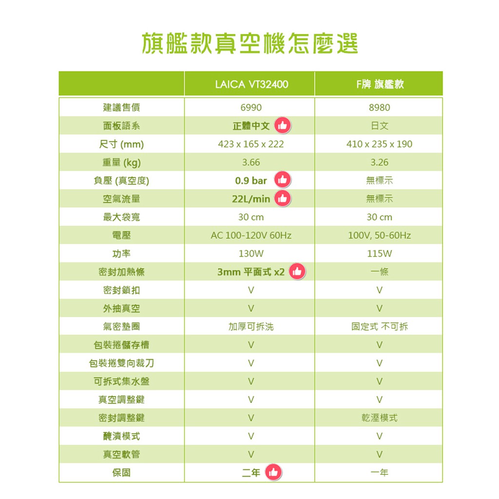 LAICA 萊卡 專業級雙馬達真空包裝機 VT3240 可外抽真空可醃漬 多樣贈品搭配任選