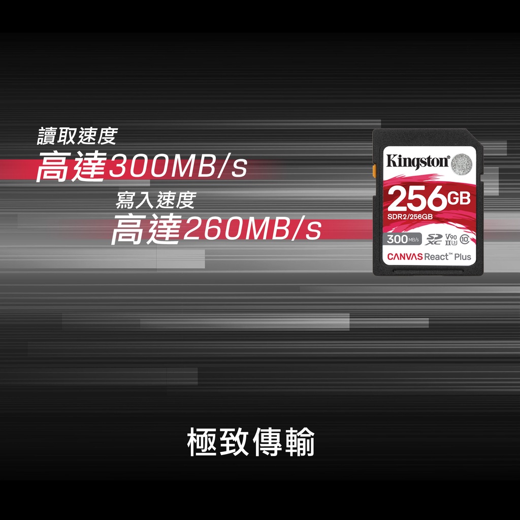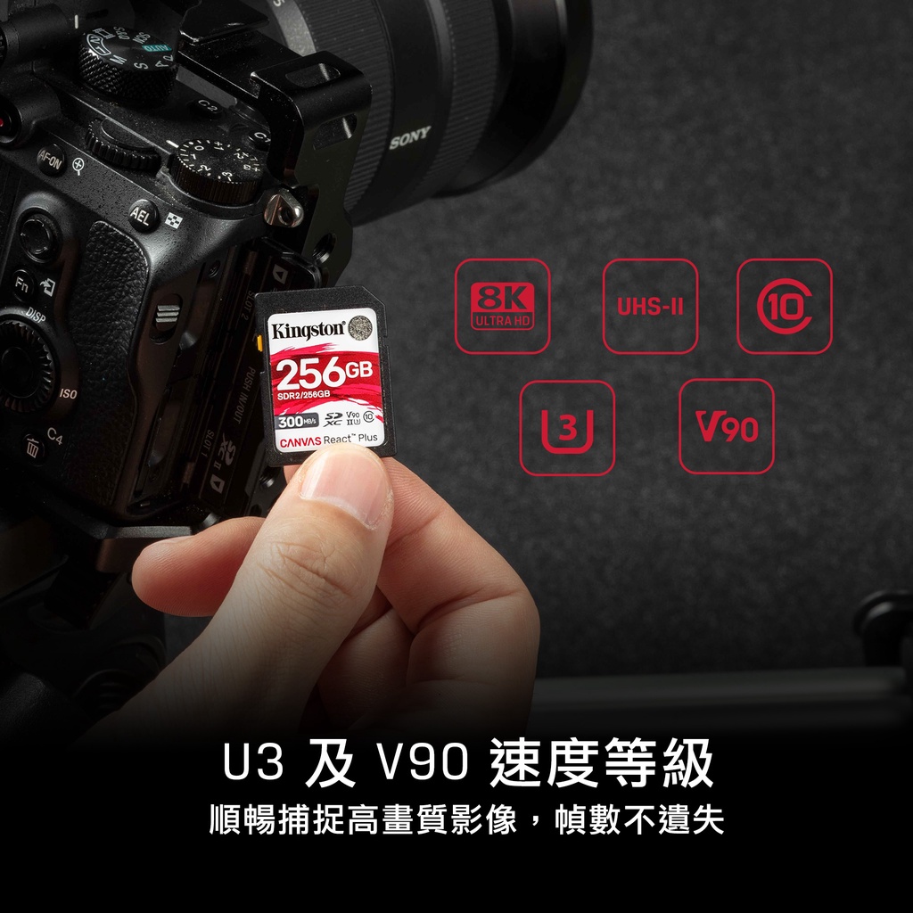 Kingston金士頓 SDR2/256GB Canvas React Plus SD 記憶卡 256G U3 V90