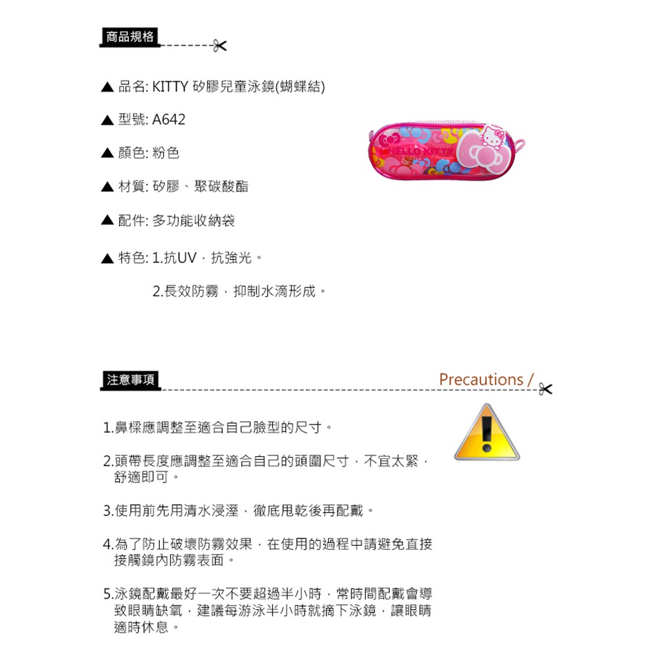 成功 KITTY矽膠兒童泳鏡(蝴蝶結)