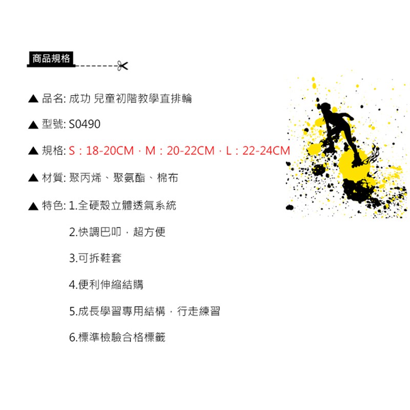 成功 S0490兒童初階教學伸縮直排鞋