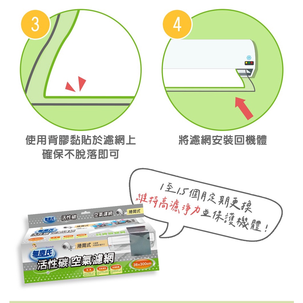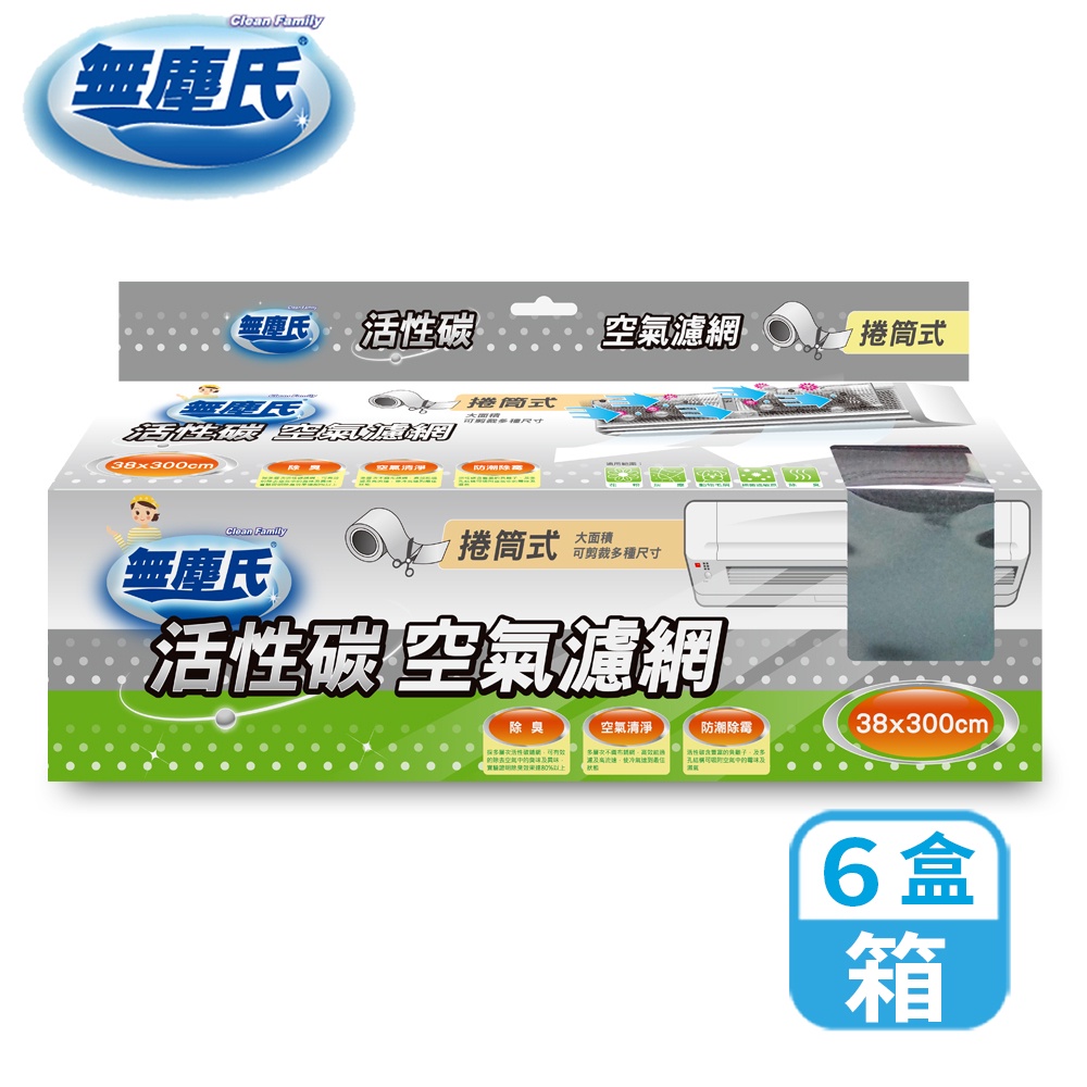 無塵氏 活性碳捲筒式空氣濾網 (38cm*300cm/捲) 1片x6盒-箱購【宅配】冷氣濾網 空氣清淨機濾網