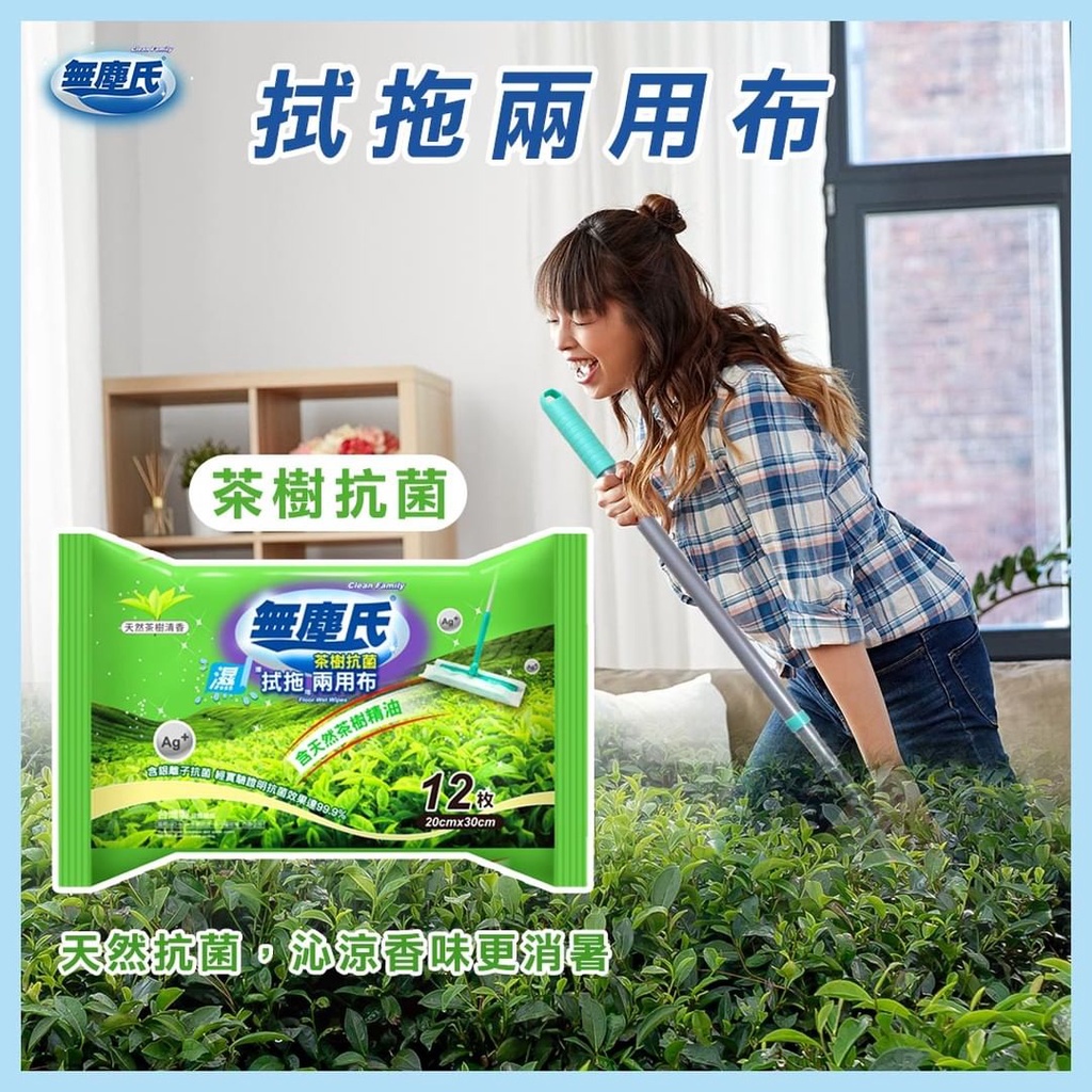 無塵氏 抗菌拭拖兩用布(茶樹/檸檬柑橘/薰衣草) 12枚/包【超取】銀離子配方