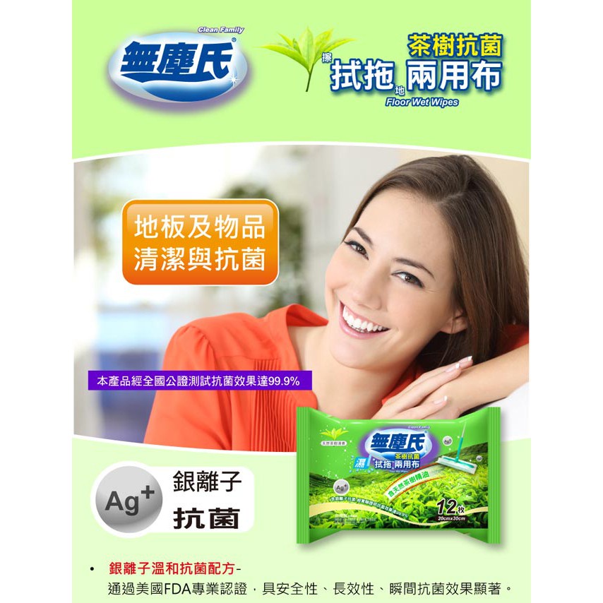 無塵氏 茶樹抗菌拭拖兩用布 12枚x12包-箱購【超取/宅配】銀離子配方