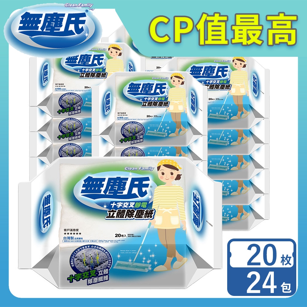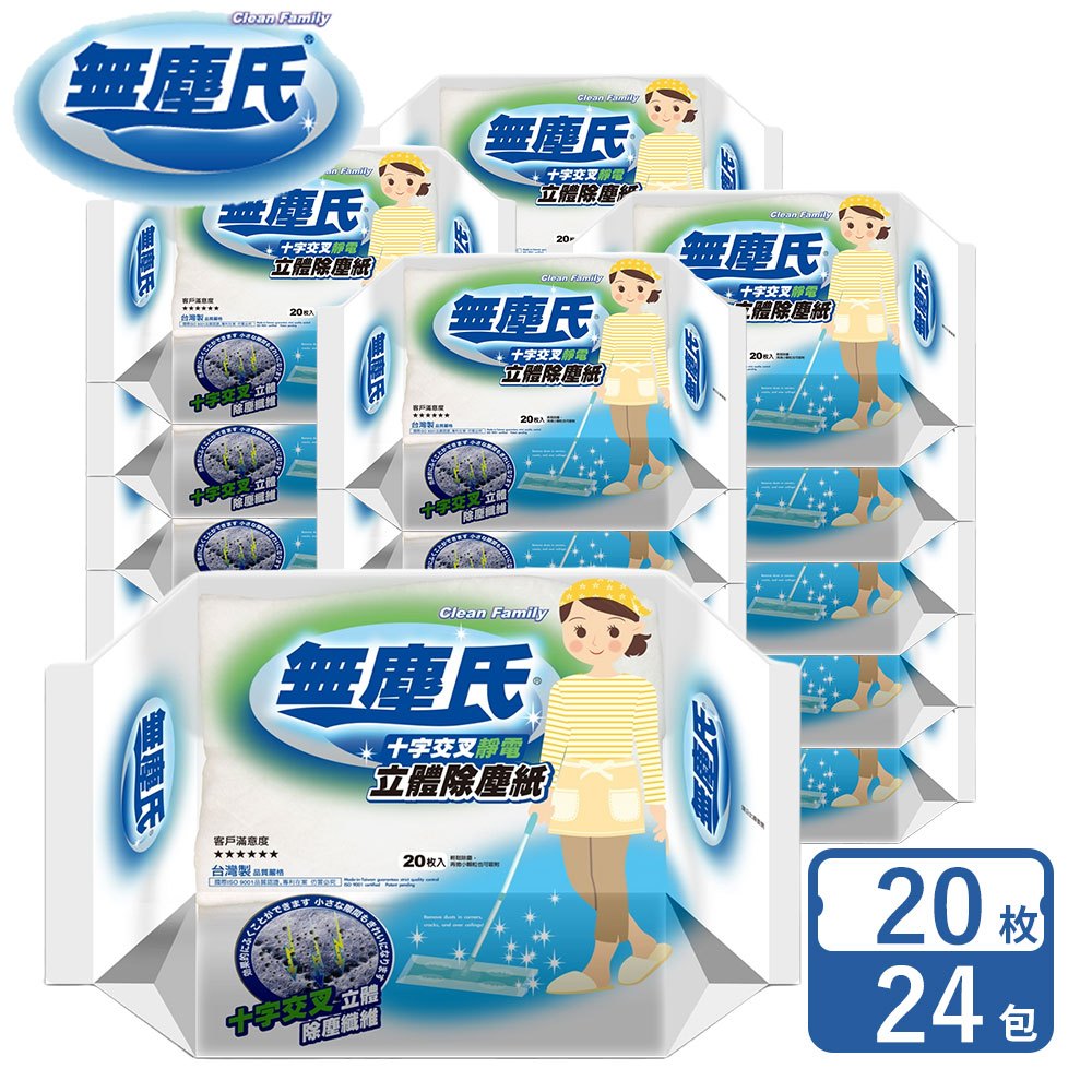 無塵氏 十字交叉壓紋靜電除塵紙 20枚x24包-箱購 【超取/宅配】