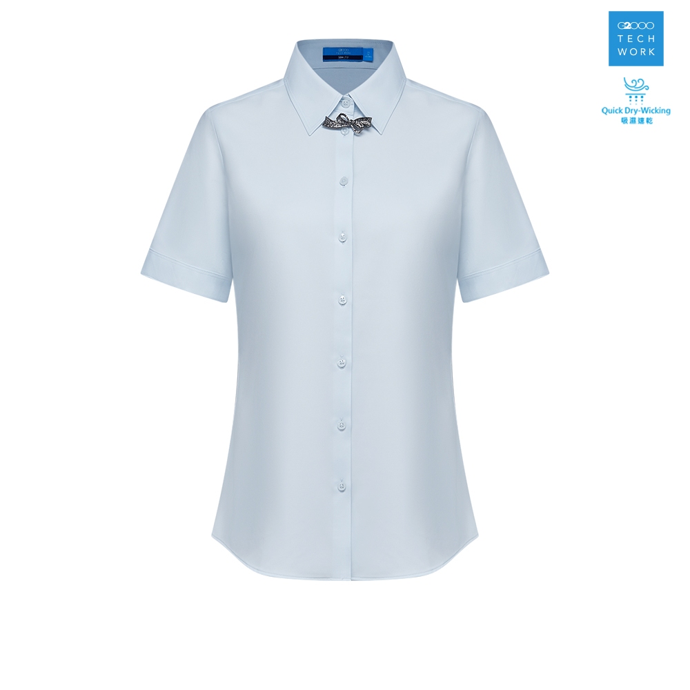 【G2000】女款 商務吸濕排汗功能短袖上班襯衫-水藍色 5122172370 商務氣質襯衫|上班穿搭首選