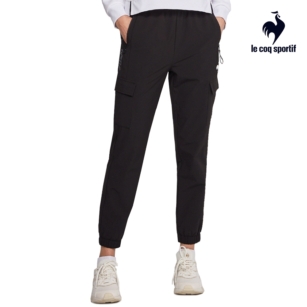 【LE COQ SPORTIF 法國公雞】四面彈潮流運動平織運動長褲-女款-黑色-LWS82218